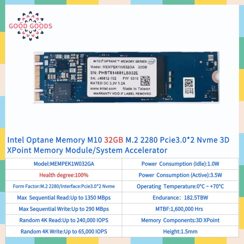Intel Optane หน่วยความจํา M10 32GB 64GB M.2 2280 Pcie3.0*2 Nvme 3D XPoint หน่วยความจําโมดูล/ระบบ Accelerator MEMPEK1J032GA/MPEK1J064GA