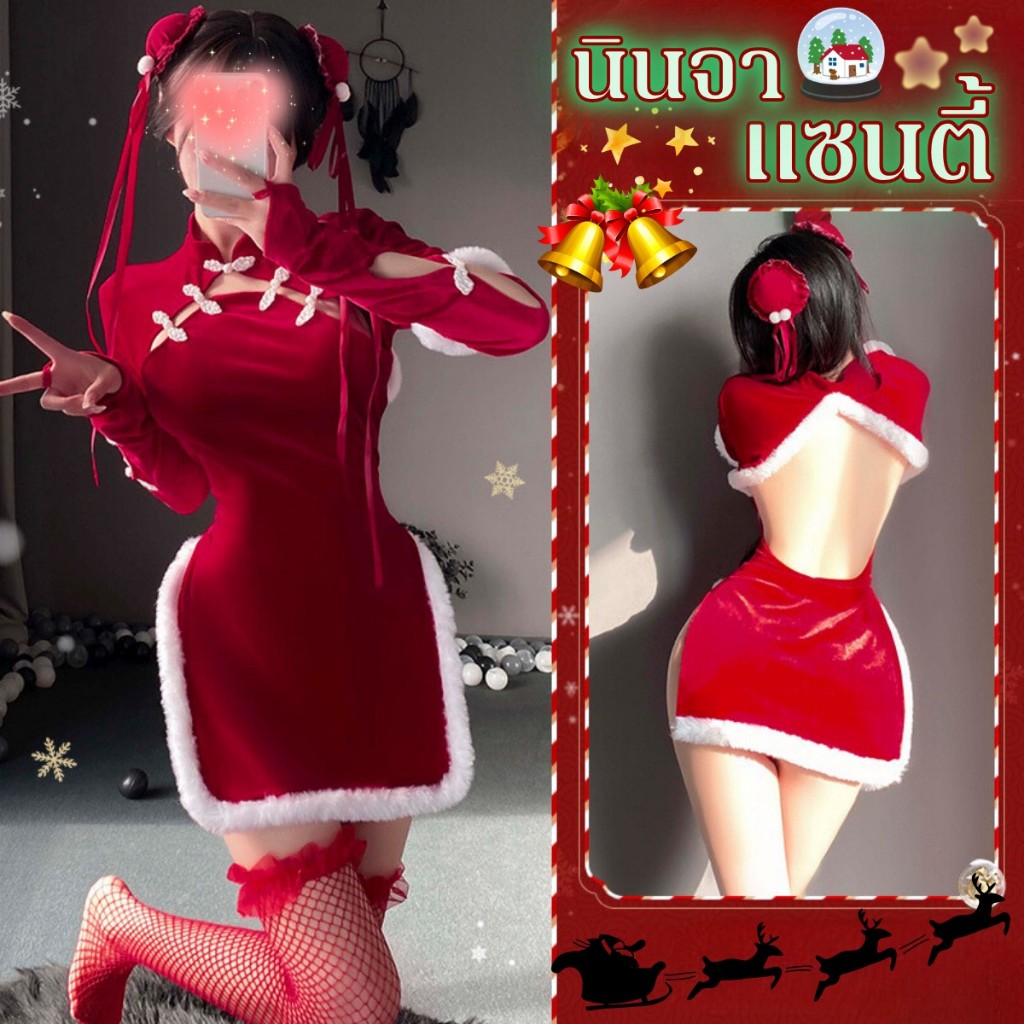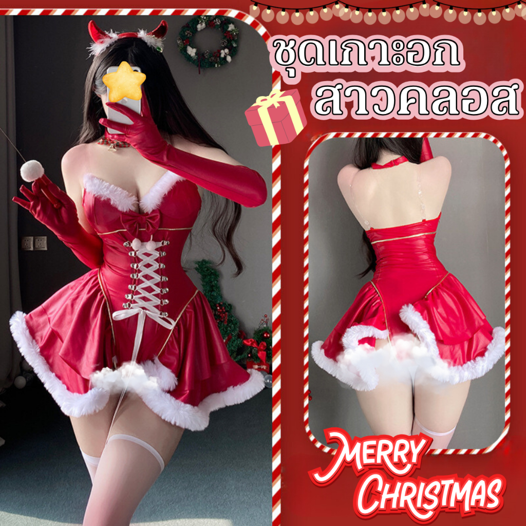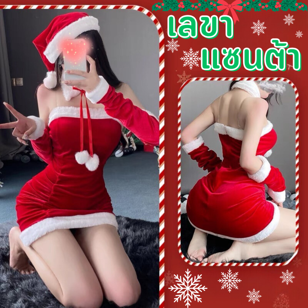 BKK SEXY ชุด คริสมาส ผู้หญิง ชุดแซนตี้ ช ุดแฟนซี 💗มีไซต์ตั้งแต่ M-2XL ได้ถึง 80kg SET-118
