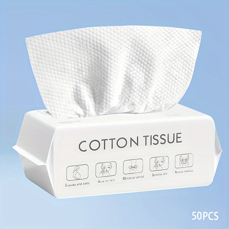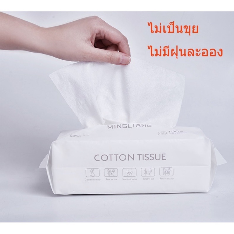 ทิชซู่เช็ดหน้าผ้าฝ้าย 100% ผ้าเช็ดหน้าแบบใช้แล้วทิ้ง ผ้าเช็ดหน้าผ้าฝ้าย50/100ชิ้นไม่มีสาร เรืองแสง