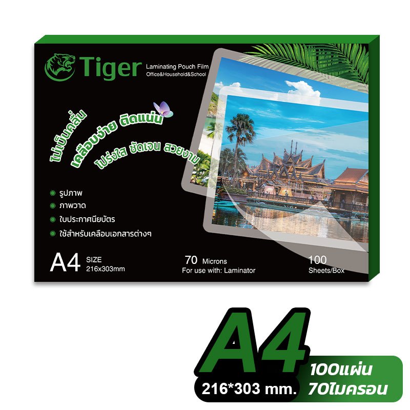 Tiger แผ่นเคลือบกระดาษA4 หนา70ไมครอน(100แผ่น/แพ็ค) A4 Laminator Film พลาสติกเคลือบรูปภาพ นามบัตร
