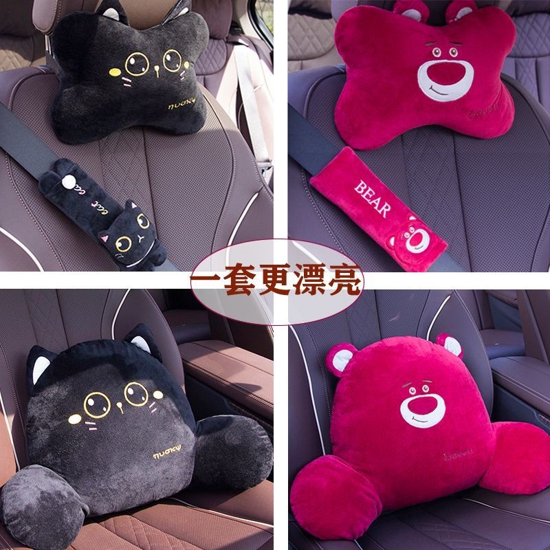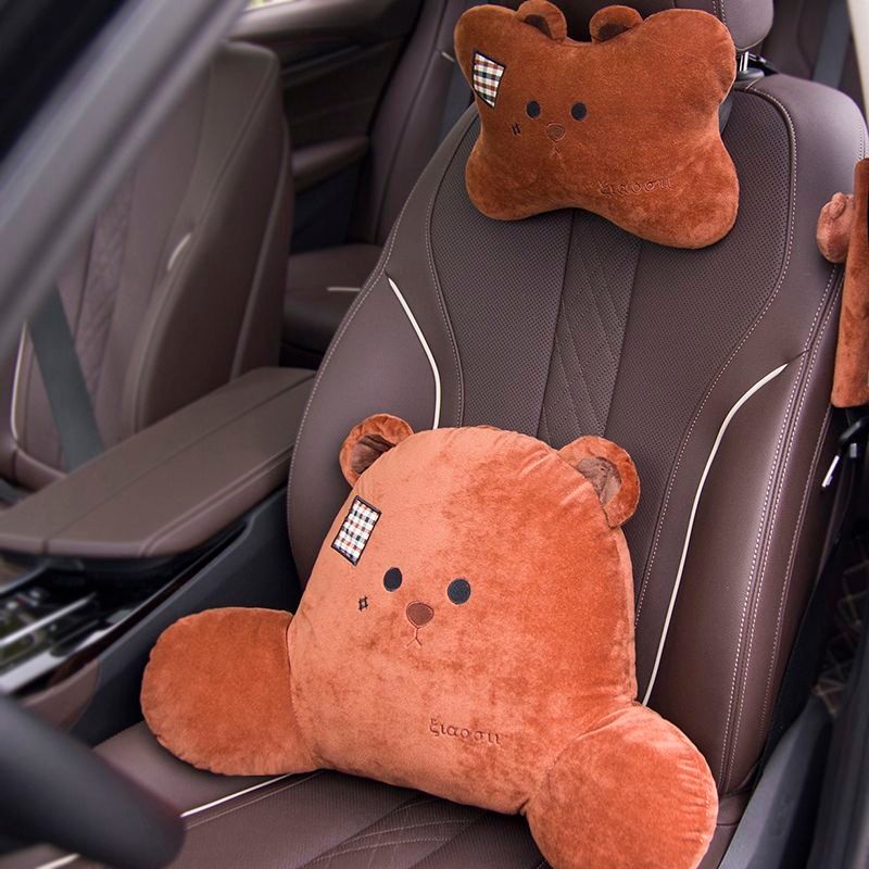 รองรับเอว four seasons universal พนักพิงศีรษะในรถยนต์ หมอนบีบอัดแบบนุ่ม การ์ดคอรถยนต์ การ์ตูนน่ารัก หมอนภายในรถ หมอนเบาะรถยนต์ หมี