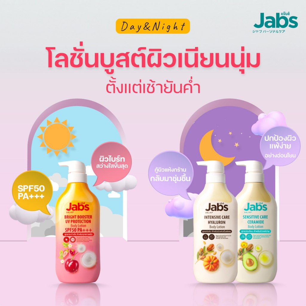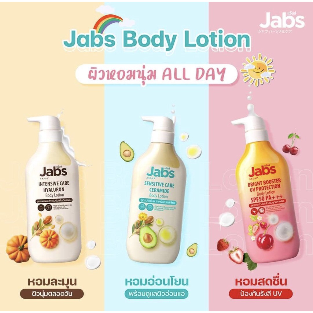 Jabs Body Lotion SPF50 Pa+++ 450ml. บอดี้ โลชั่น ครีมบำรุงผิว & Shower Cream 400ml. ครีมอาบน้ำ