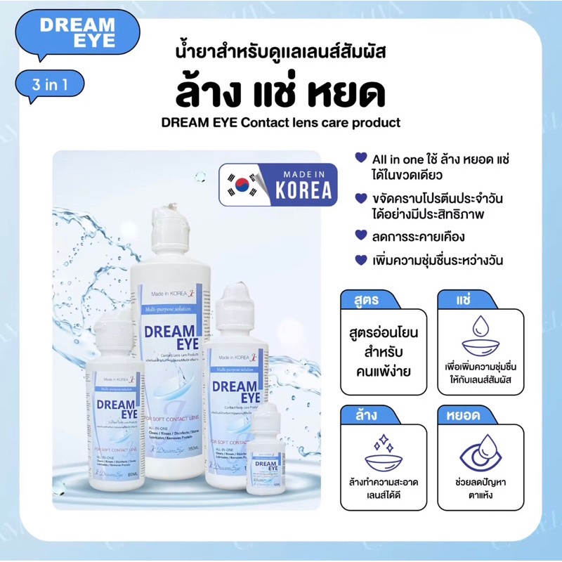(ขวดเล็ก) 40ml. Dream Eye ดรีมอาย น้ำยาทำความสะอาด + แช่เลนส์ คอนแทคเลนส์ น้ำยาคอนแทค น้ำยาล้างคอนแทคเลนส์