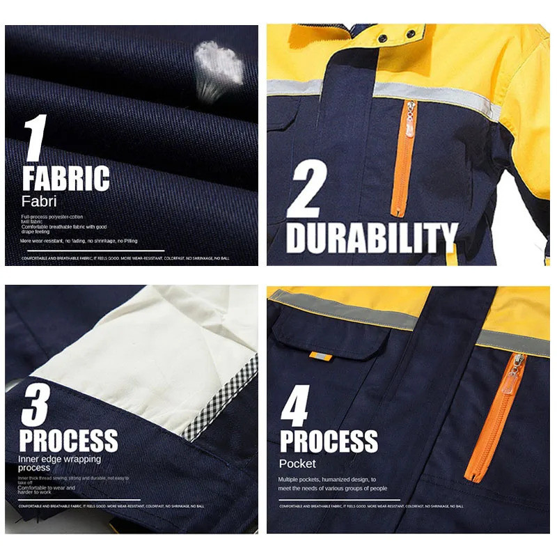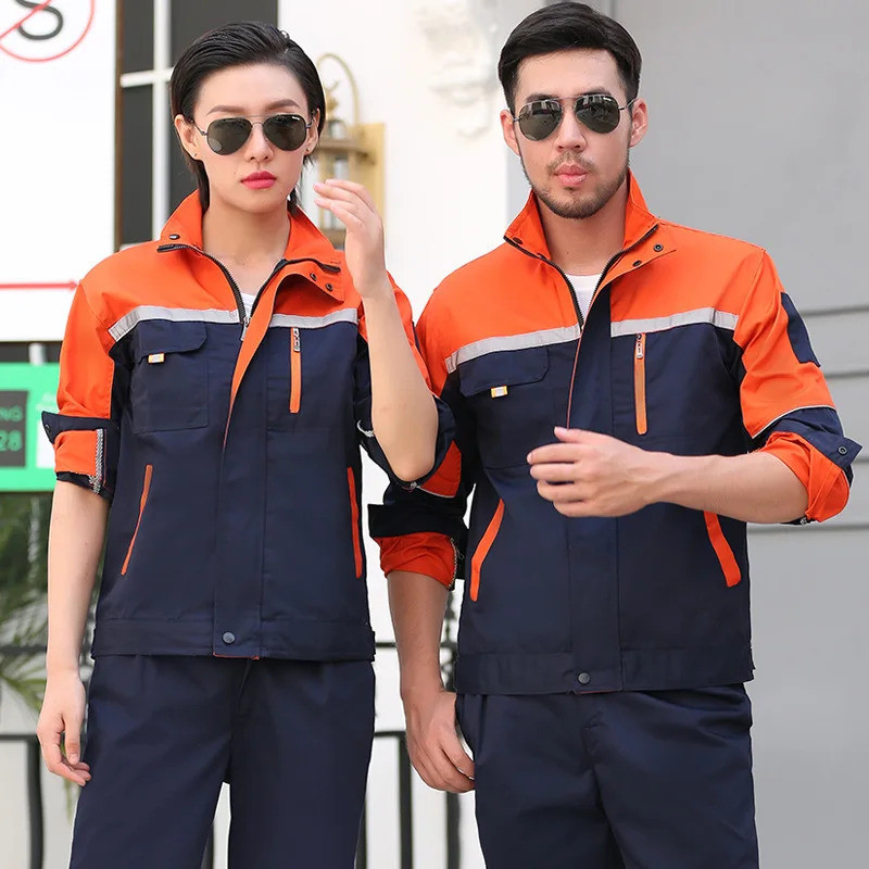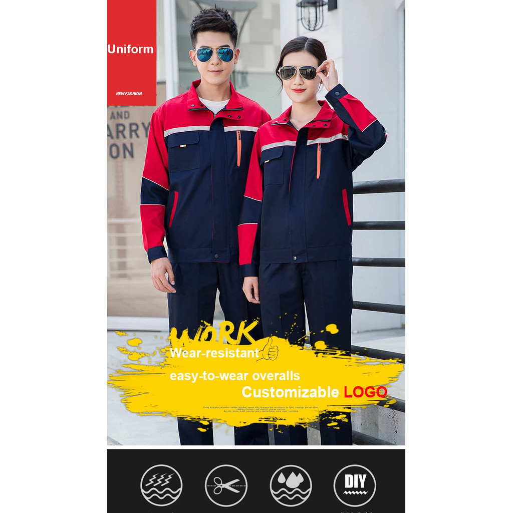 บุรุษโรงงานเสื้อทํางานเครื่องแบบแขนยาวเปิดลงปก ชุดทํางาน มอเตอร์ช่างซ่อมการประชุมเชิงปฏิบัติการสองกระเป๋าเสื้อยืดท็อปส์