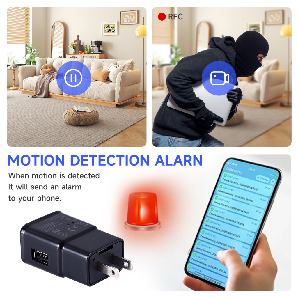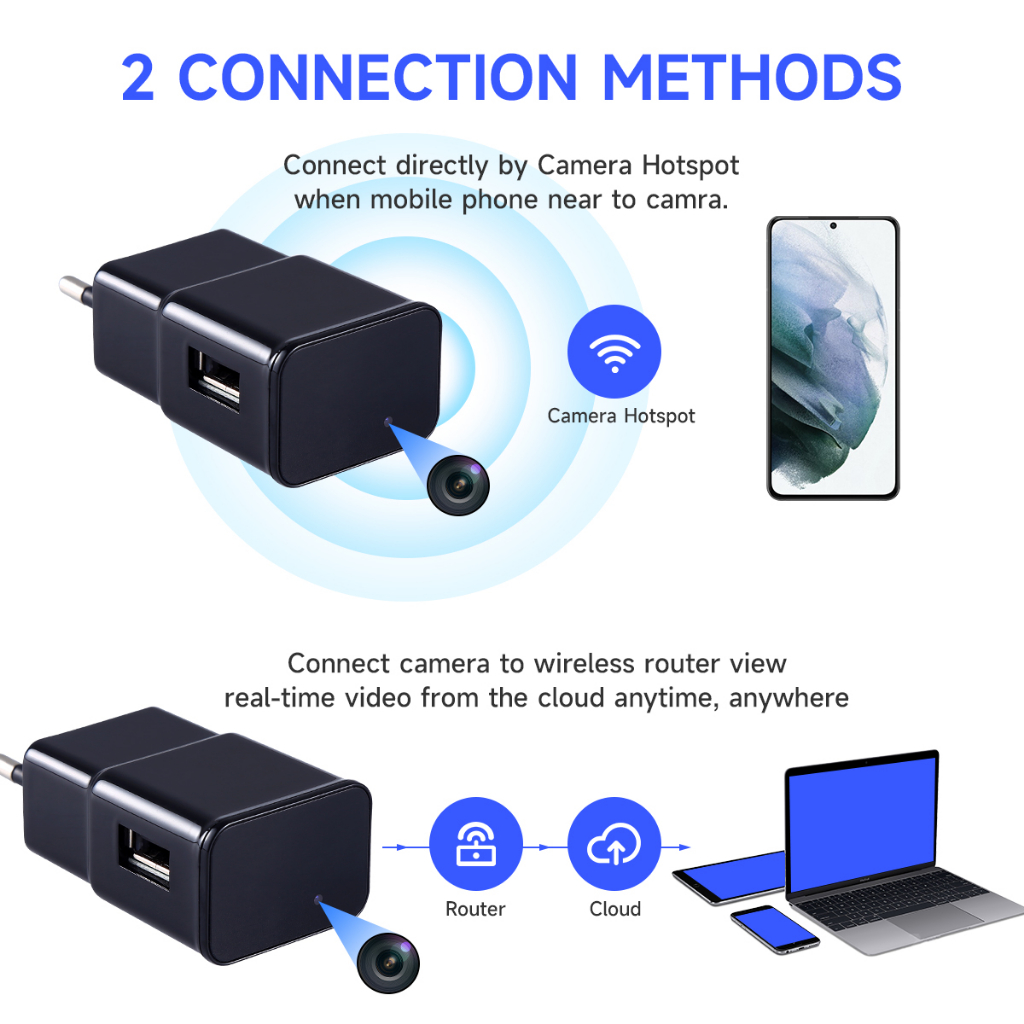 กล้องวงจรปิดไร้สาย 1080P ปลั๊ก US EU พร้อมที่ชาร์จ wifi แบบพกพา