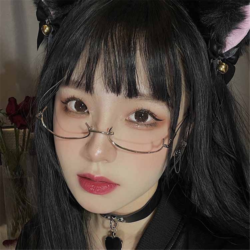 ในไทย💖แว่นตาแบบครึ่งกรอบโลหะสายตาสั้นไม่มีเลนส์แฟชั่นความประณีตความรู้สึกขั้นสูงสําหรับผู้หญิง.COD