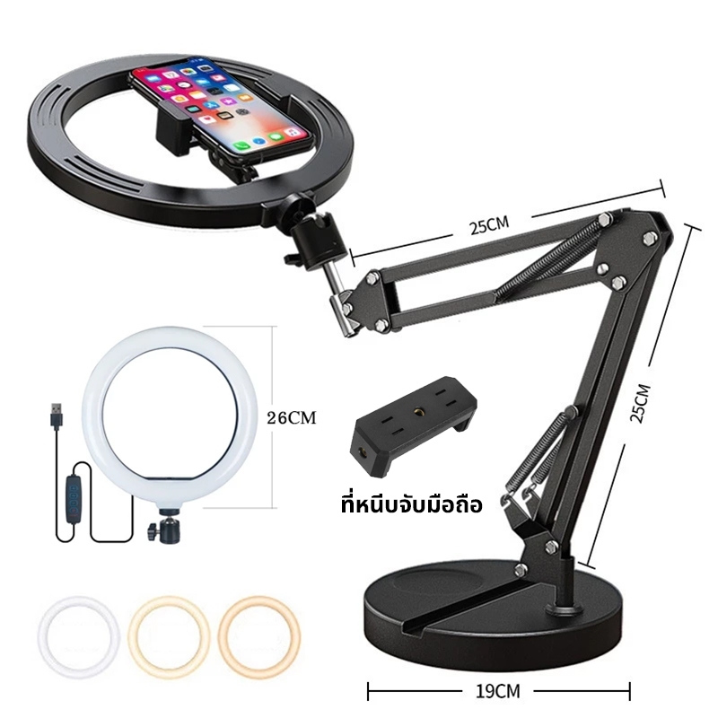 ไฟไลฟ์สด ชุดไฟ ไลฟ์สด Led 26cm ปรับได้3สี สำหรับเพิ่มความสว่าง ทำคอนเทนต์ ไฟแต่งหน้า ไฟถ่ายรูป
