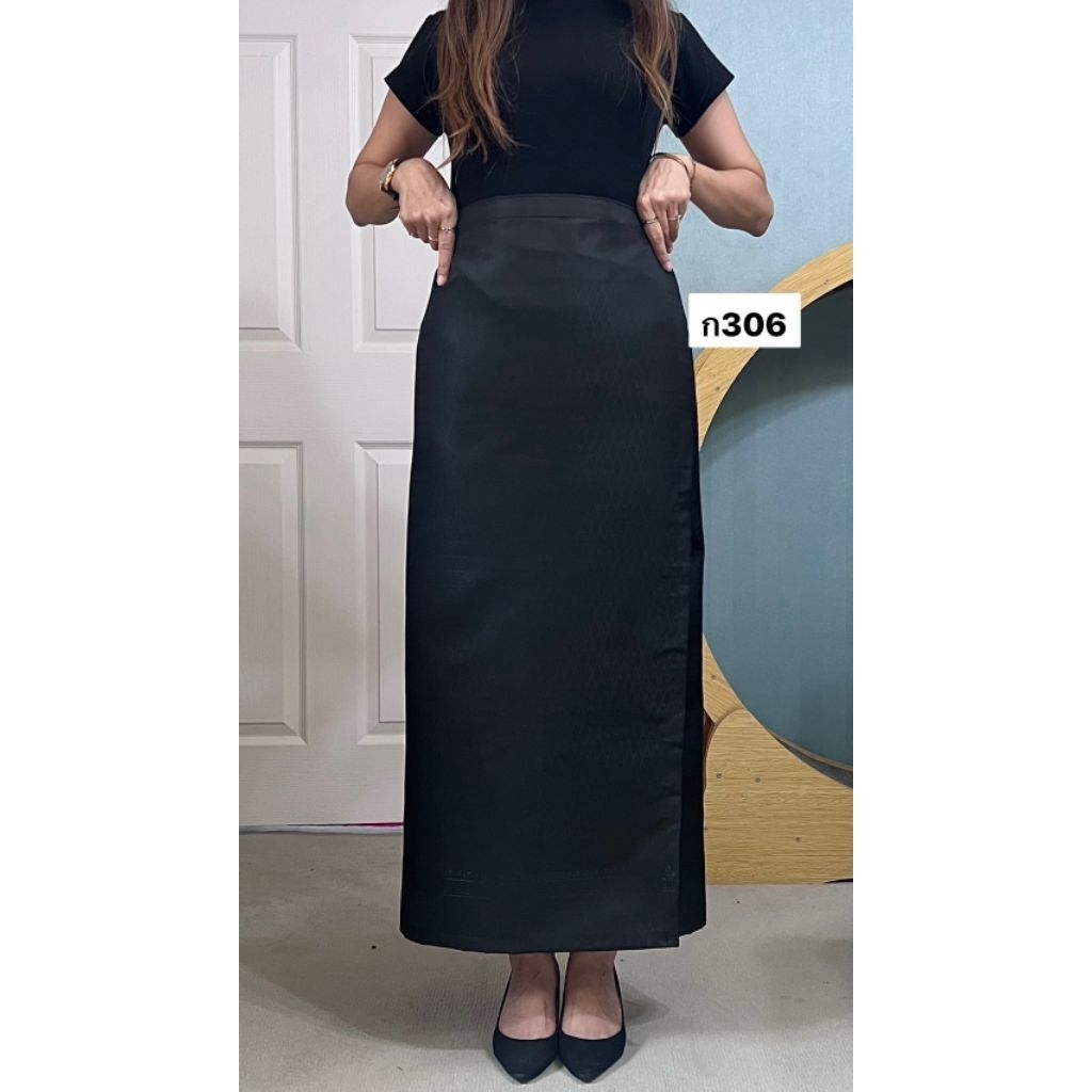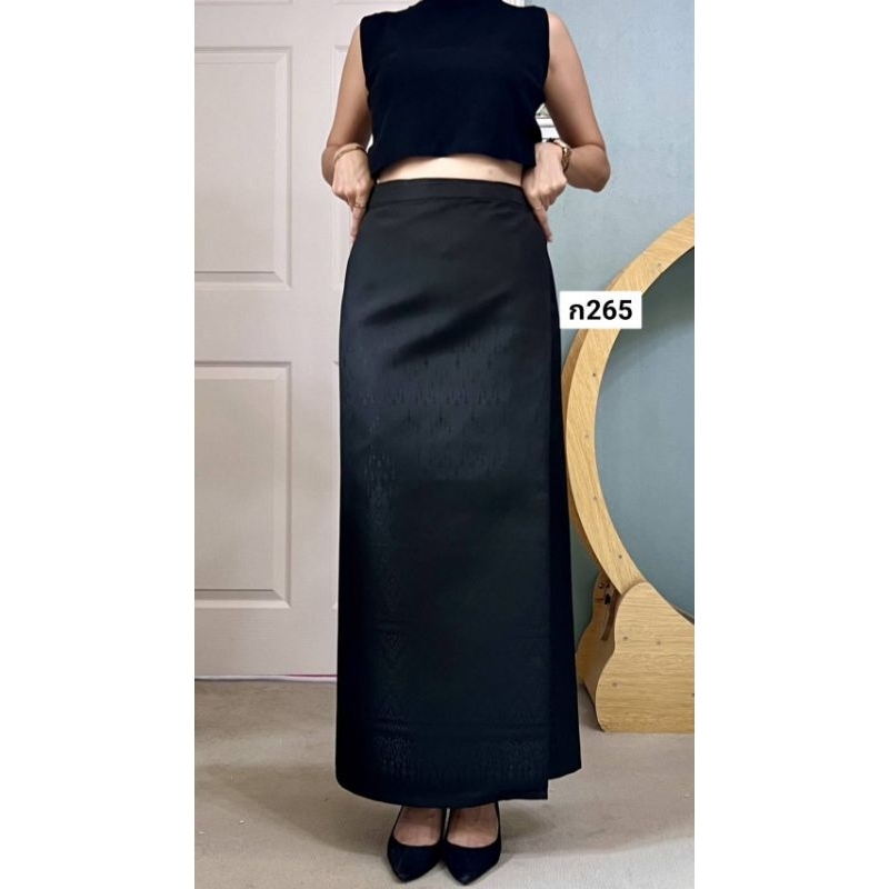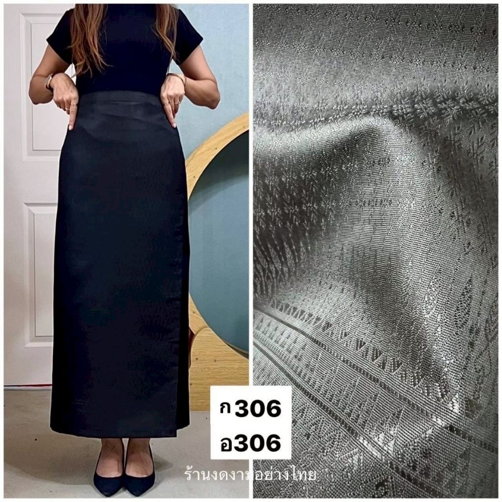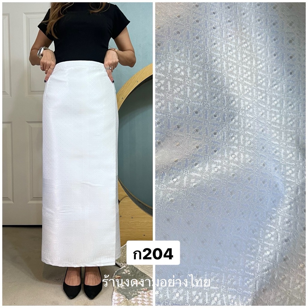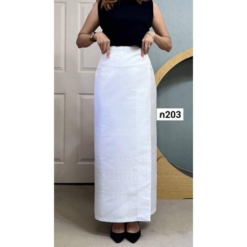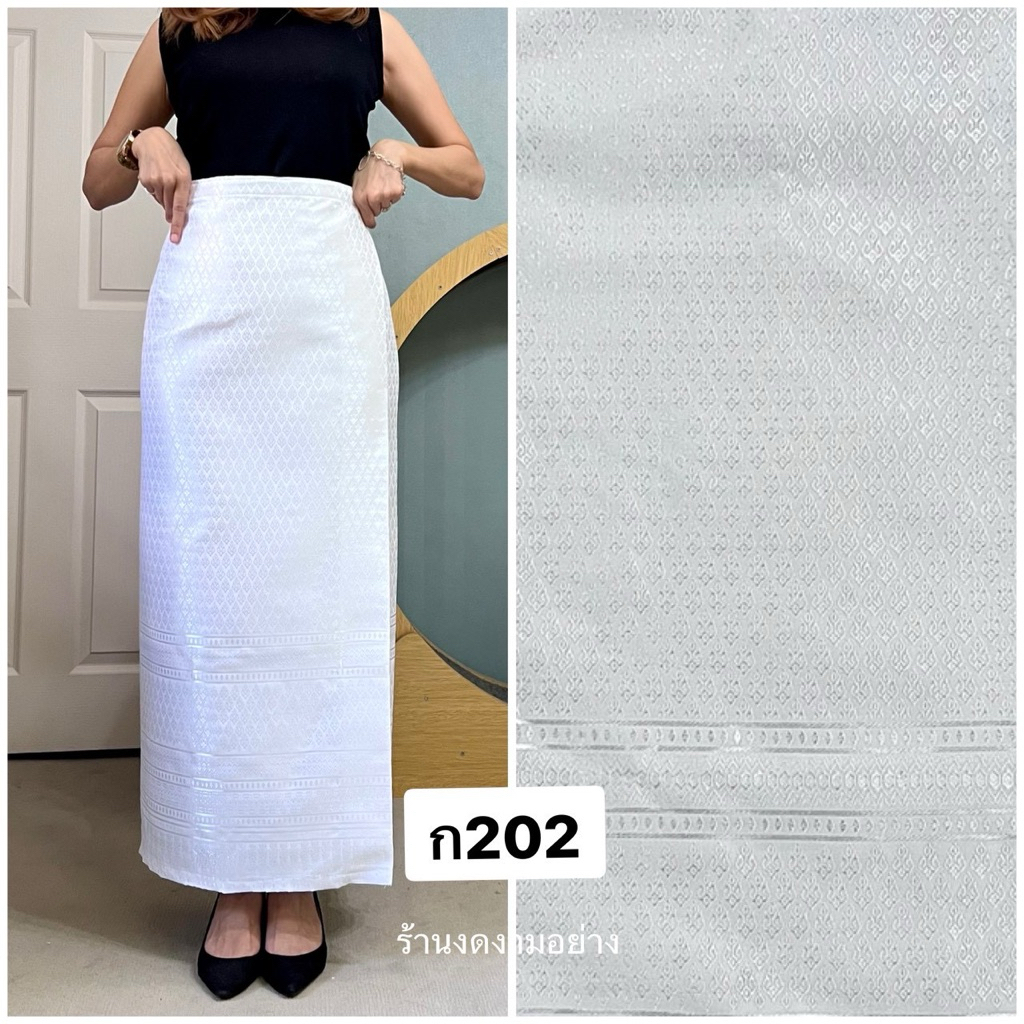 ผ้าถุงเอวป้าย ติดตะขอ อัดซับกาว สีขาว-ดำ ล้วน