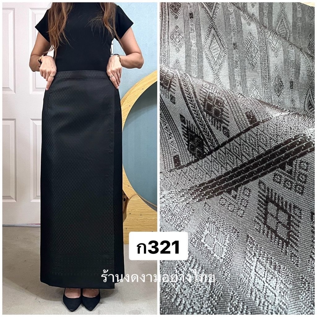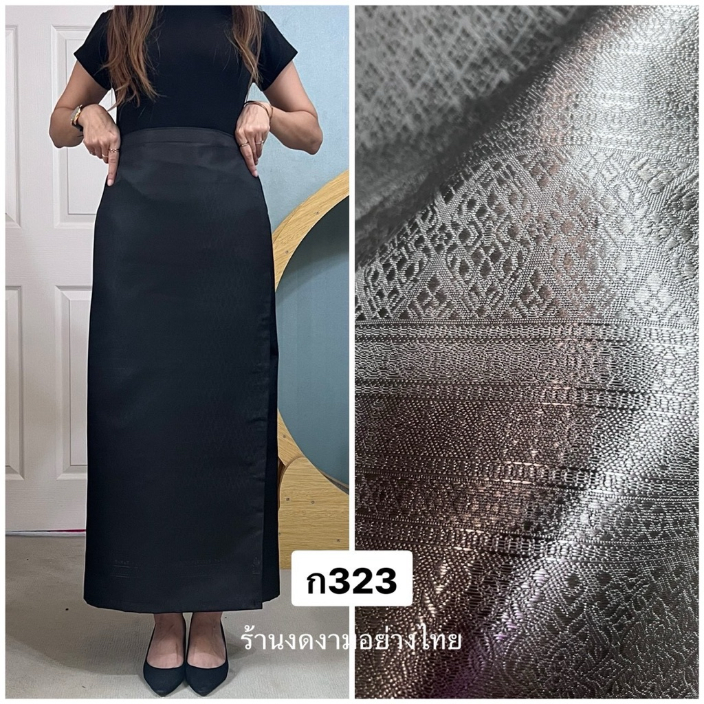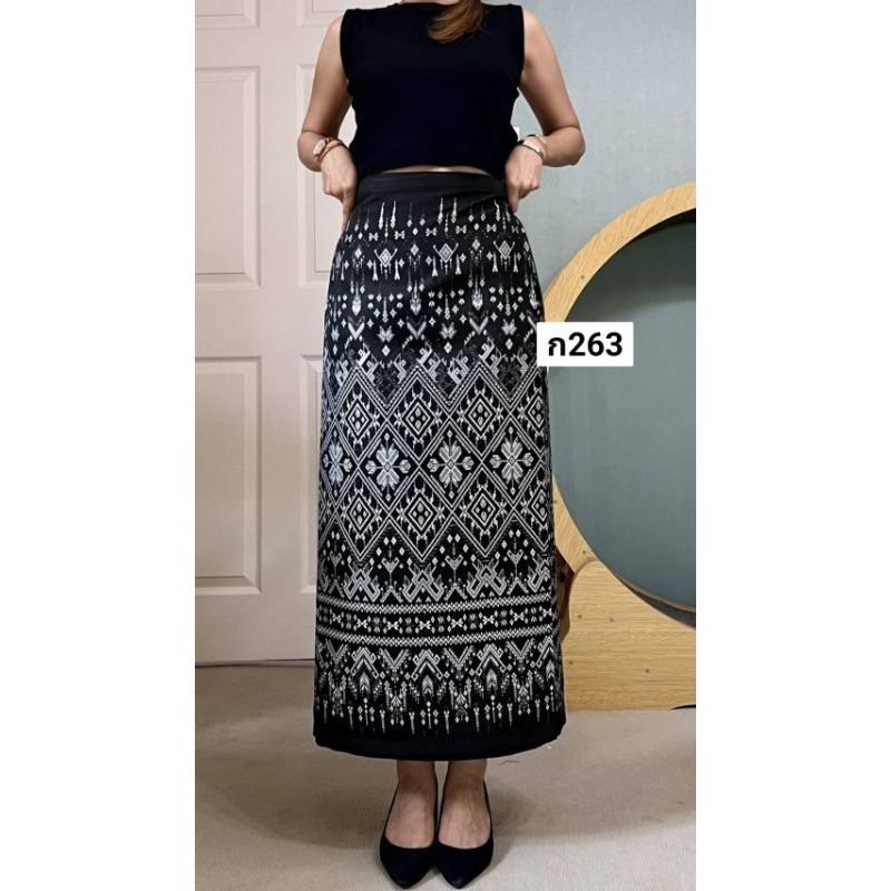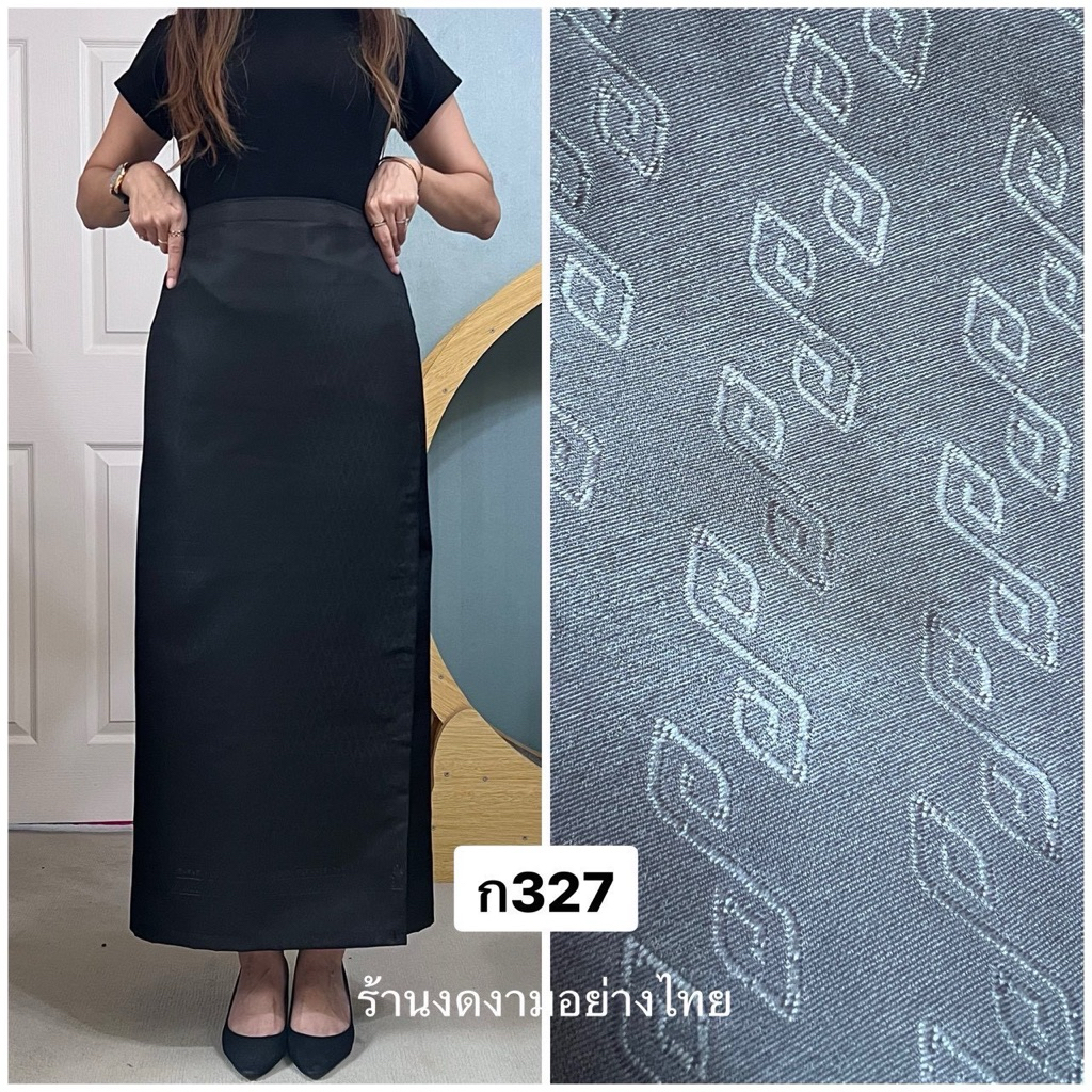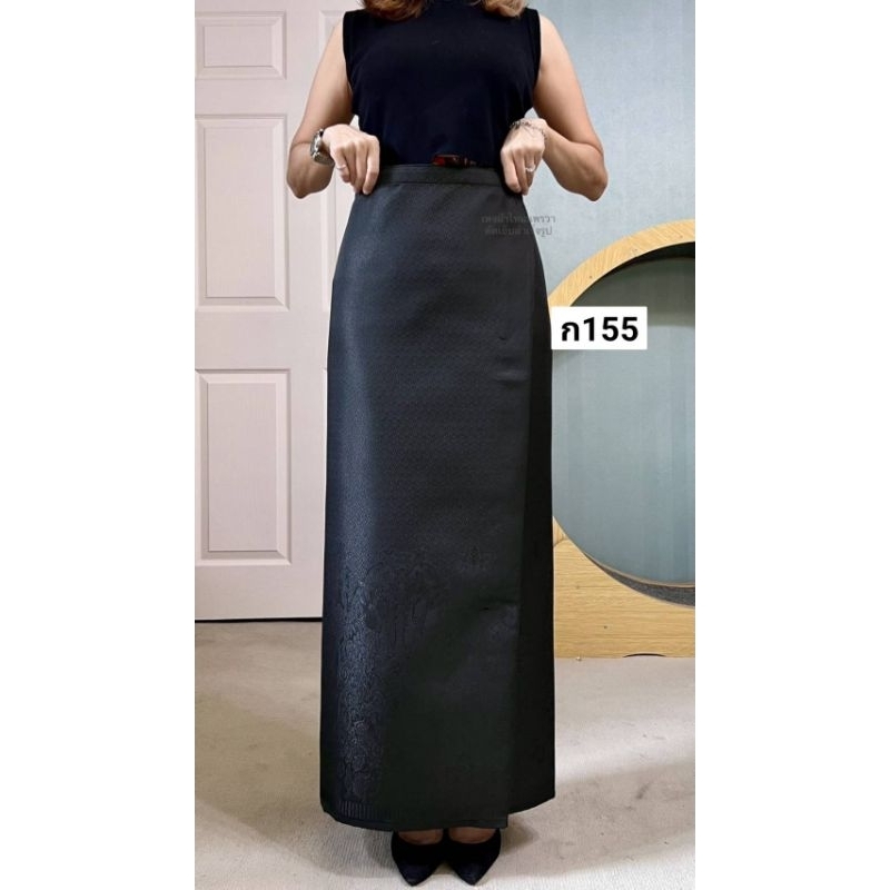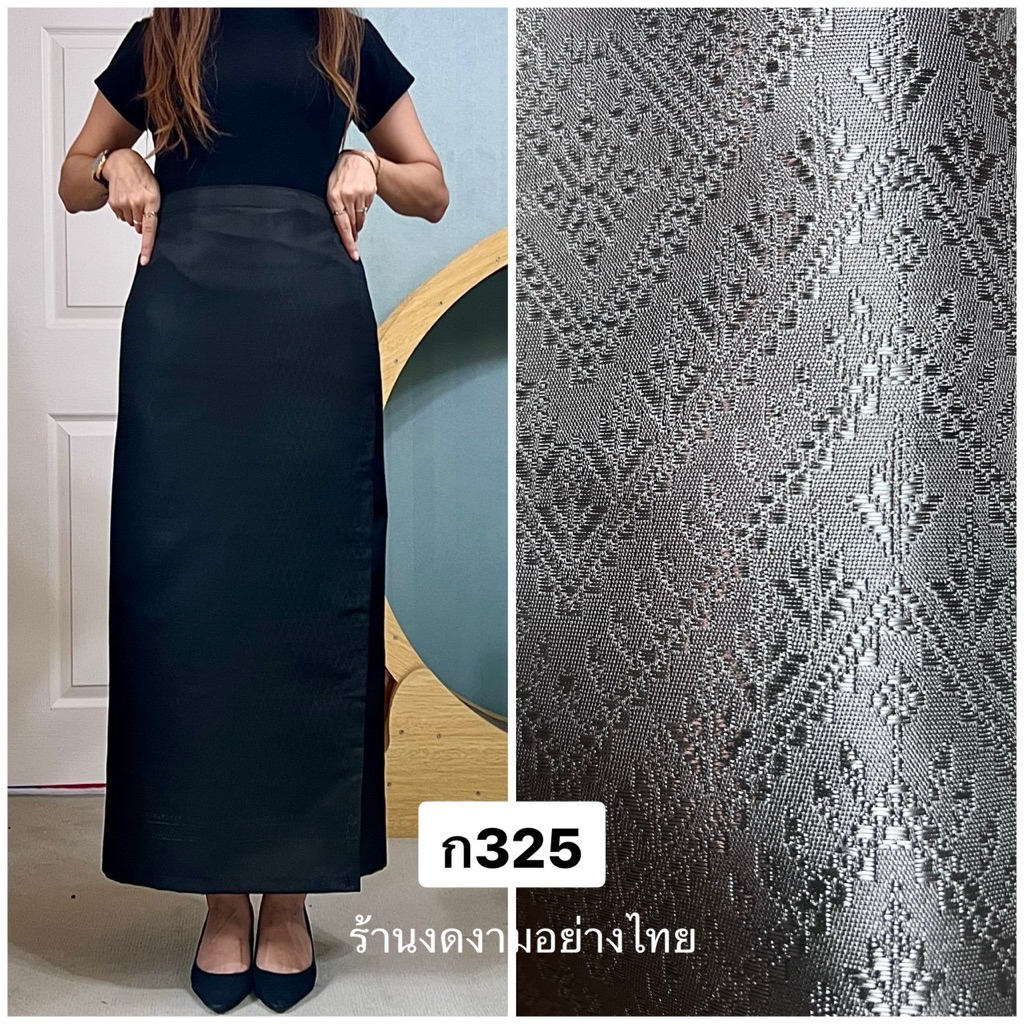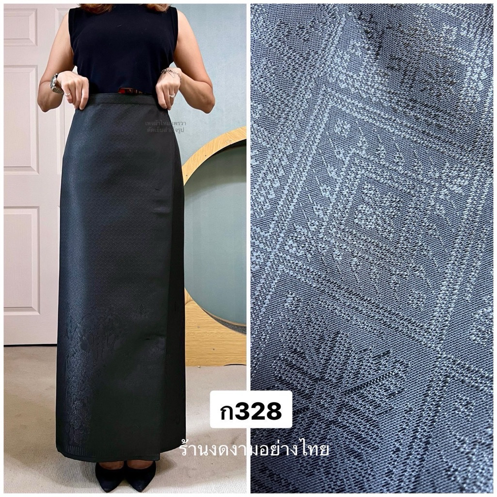 ผ้าถุงเอวป้าย ติดตะขอ อัดซับกาว สีขาว-ดำ ล้วน