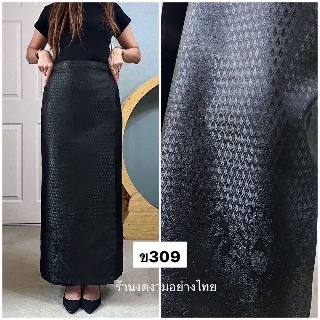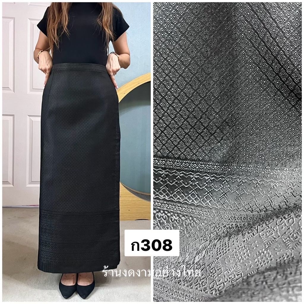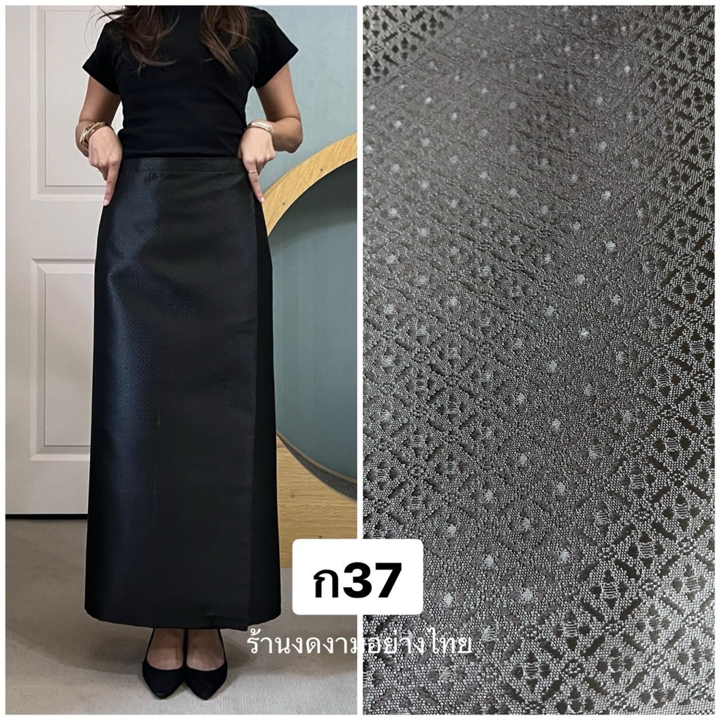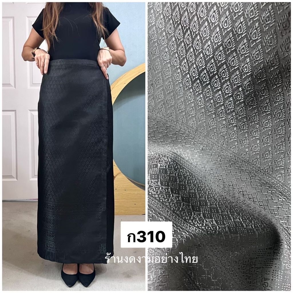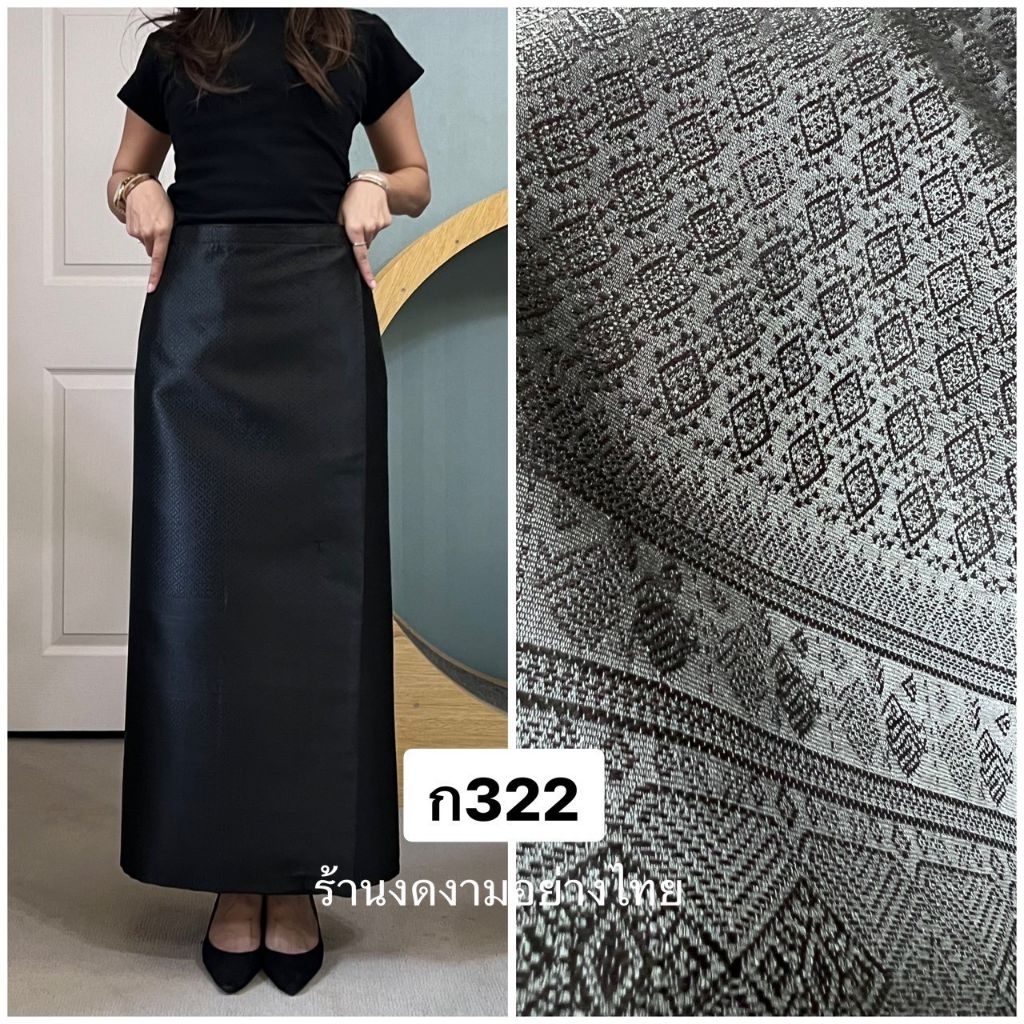 ผ้าถุงเอวป้าย ติดตะขอ อัดซับกาว สีขาว-ดำ ล้วน