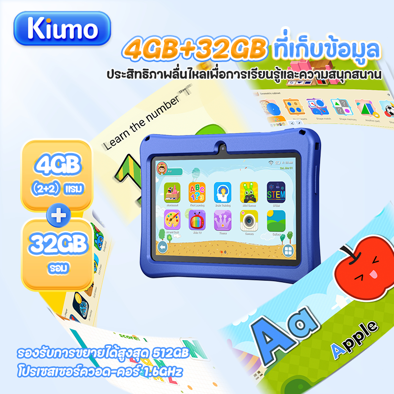 Kids Tablet(4GB+128GB) แท็บเล็ต 7.1 นิ้วสําหรับเด็กพร้อมแอปการเรียนรู้และความบันเทิงที่ติดตั้งล่วงหน้า