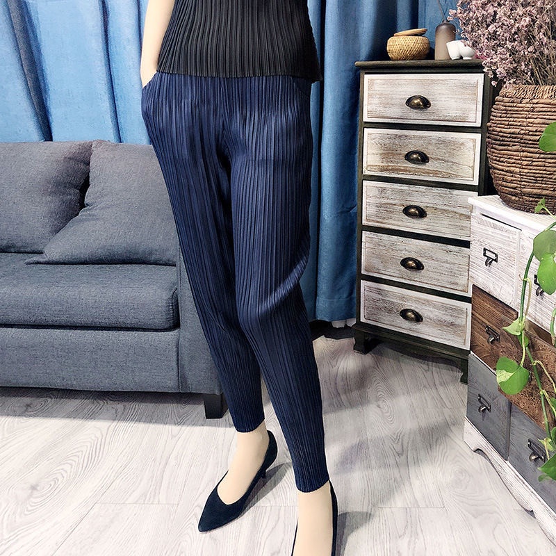 Miyake กางเกงฮาเร็มขายาวลําลอง จับจีบ ทรงหลวม เข้ารูป แฟชั่นฤดูใบไม้ผลิ และฤดูร้อน สําหรับสตรี 2023