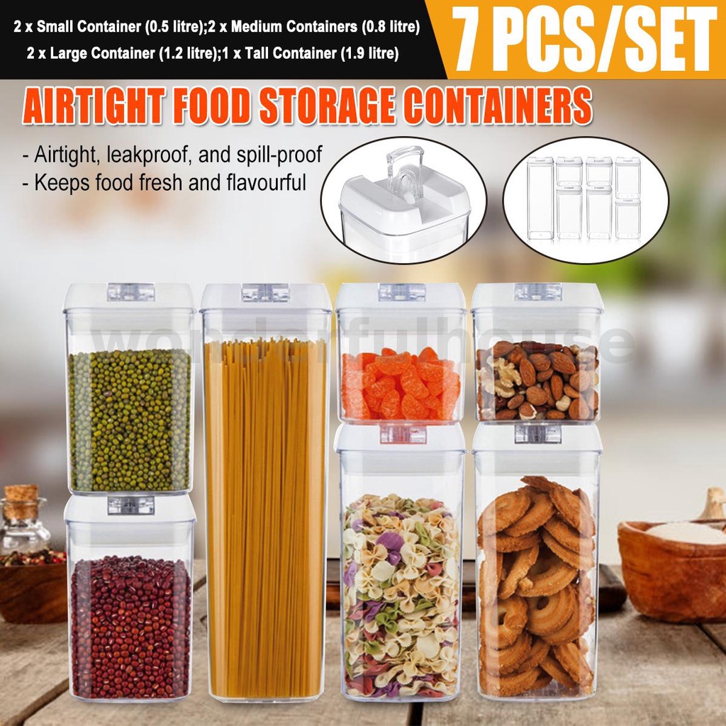 Airtight Food Storage Containers Set 7 Pieces BPA Free Plastic Cereal