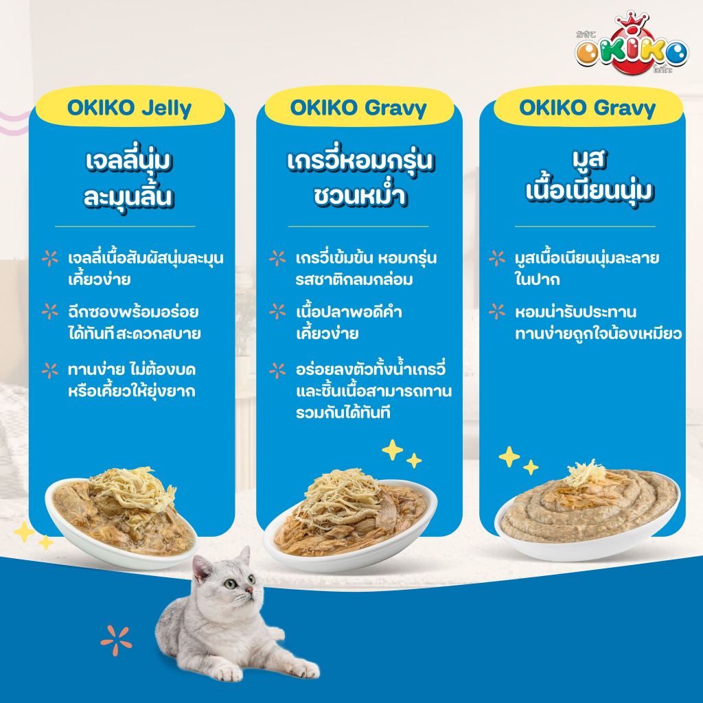 [ยกกล่อง] OKIKO โอกิโกะ อาหารเปียกแมว ผลิตจากปลาทูน่าเนื้อขาว มี 9 สูตร บรรจุ 12 ซอง