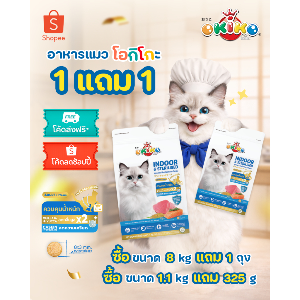 OKIKO โอกิโกะ อาหารเม็ดแมว All AGES, INDOOR&STERILISED, MOTHER&KITTEN ขนาด 8-9 kg