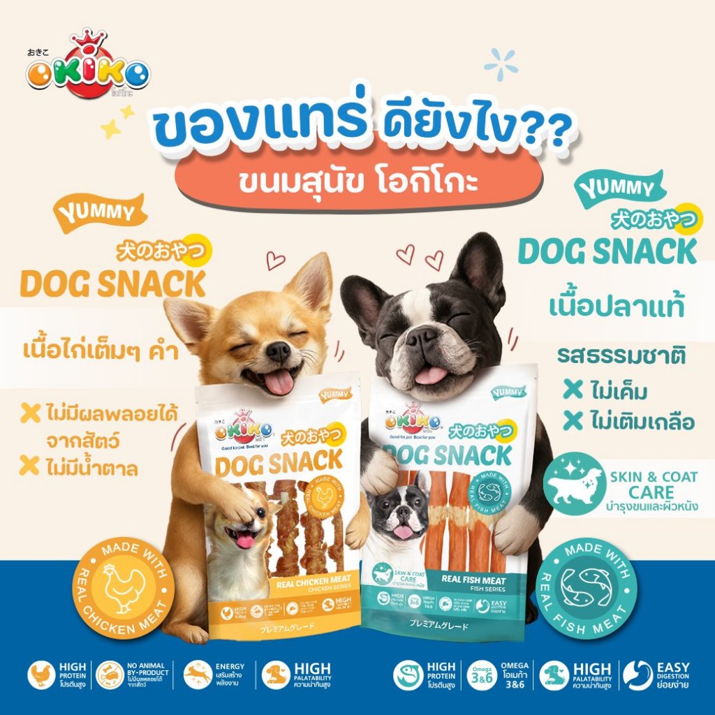 (ขนาดถุงกลาง) OKIKO โอกิโกะ DOG SNACK ขนมสุนัข เนื้อปลาชนิดต่างๆ ขนมทางเลือกสำหรับสุนัขแพ้ง่าย