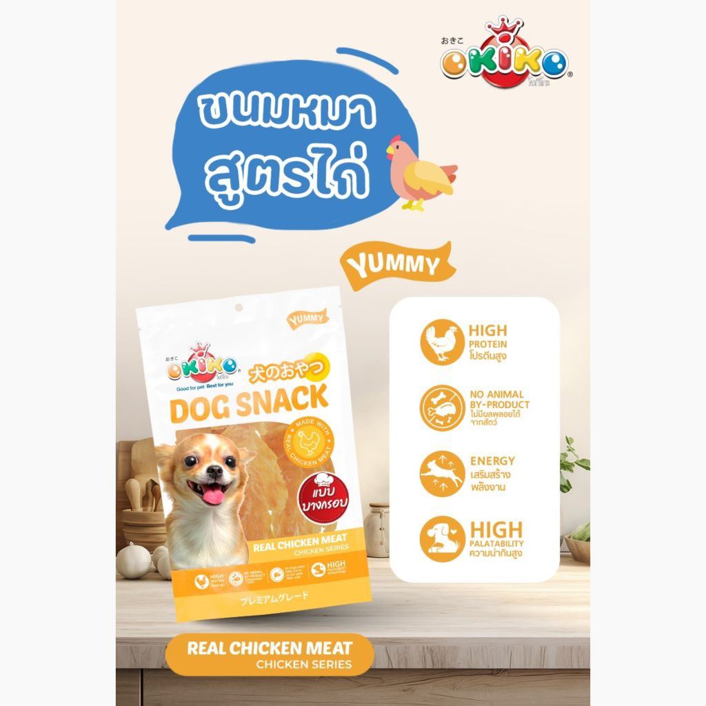 (ขนาดถุงใหญ่) OKIKO โอกิโกะ DOG SNACK ขนมสุนัข เนื้อไก่ แบบนิ่ม หอมอร่อย
