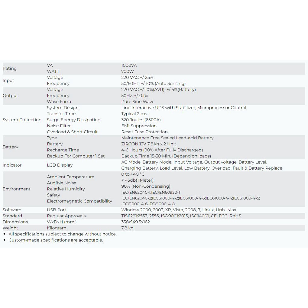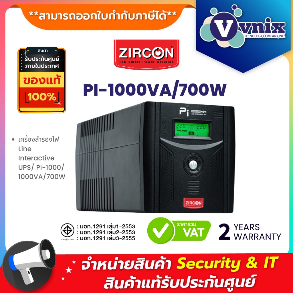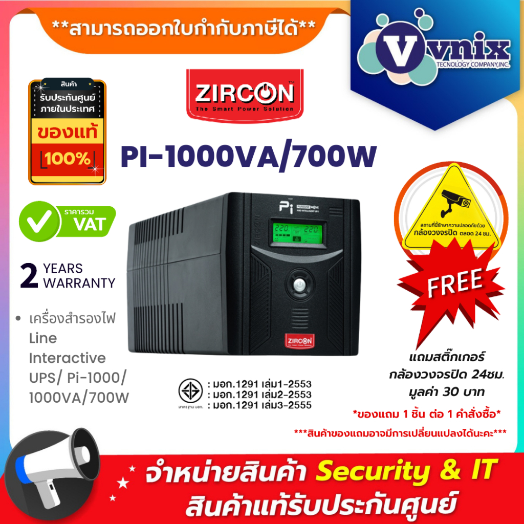 Zircon เครื่องสำรองไฟ UPS รุ่น PI-1000VA/700W By Vnix Group