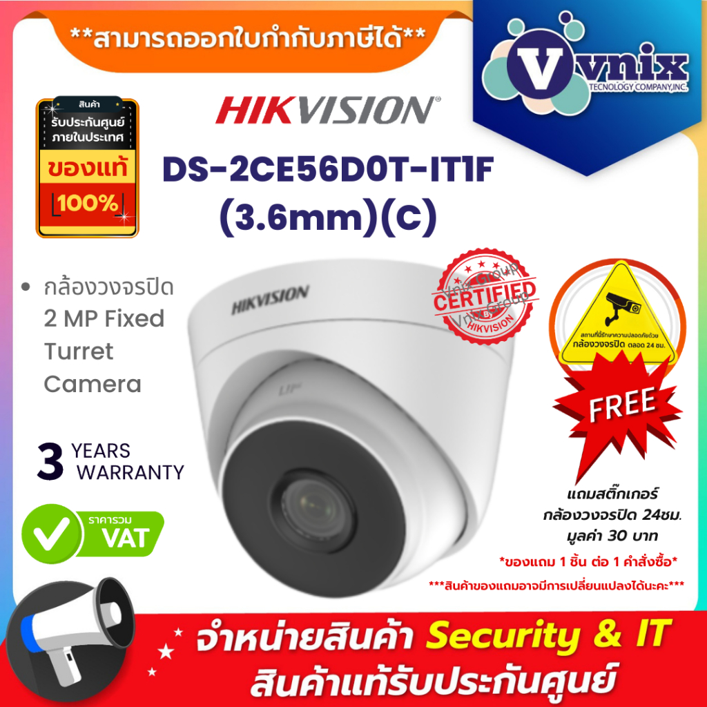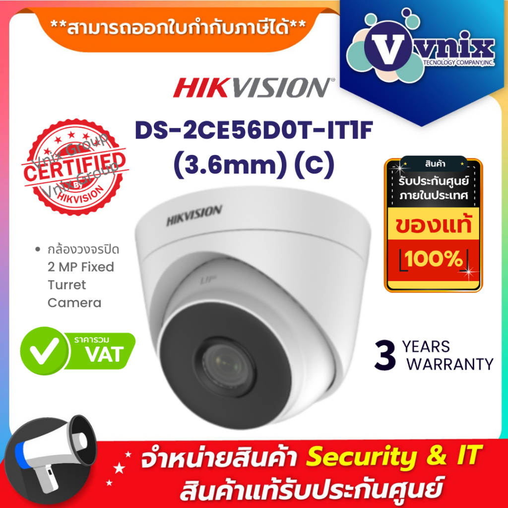 DS-2CE56D0T-IT1F(3.6mm)(C) Hikvision กล้องวงจรปิด 2 MP Fixed Turret Camera By Vnix Group