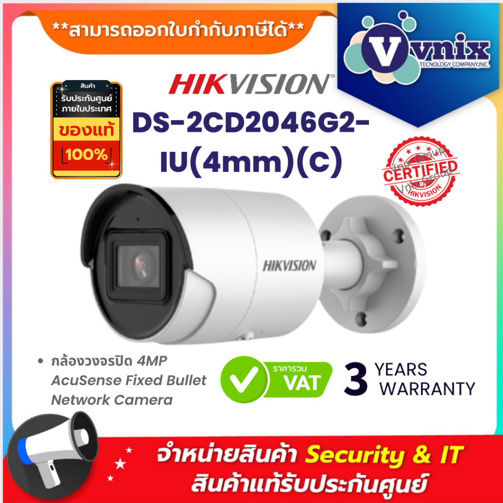 DS-2CD2046G2-IU(4mm)(C) กล้องวงจรปิด Hikvision 4MP AcuSense Fixed Bullet Network Camera by Vnix Group