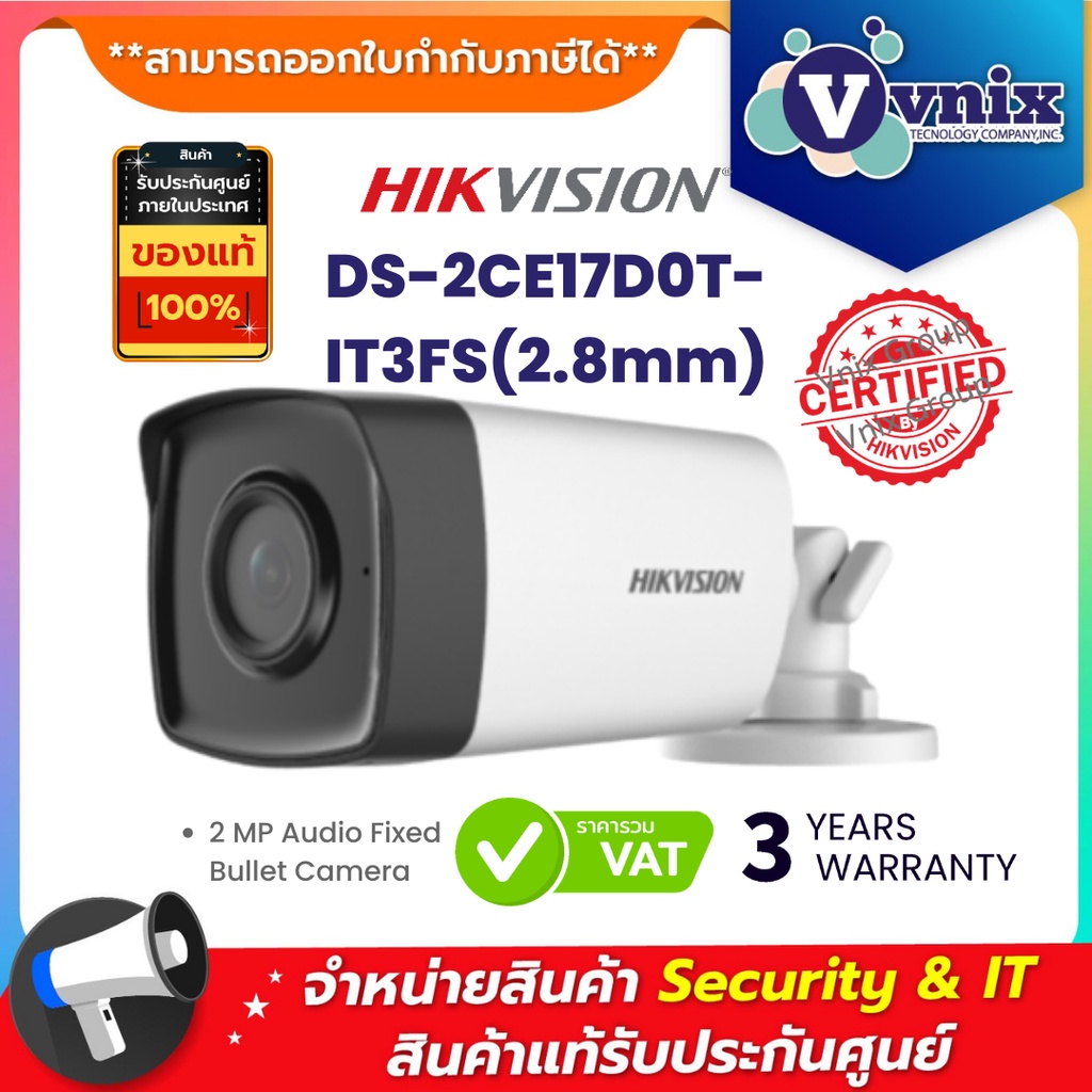 DS-2CE17D0T-IT3FS(2.8mm) กล้องวงจรปิด มีไมค์ Hikvision 2MP Audio Fixed Bullet Camera by Vnix Group