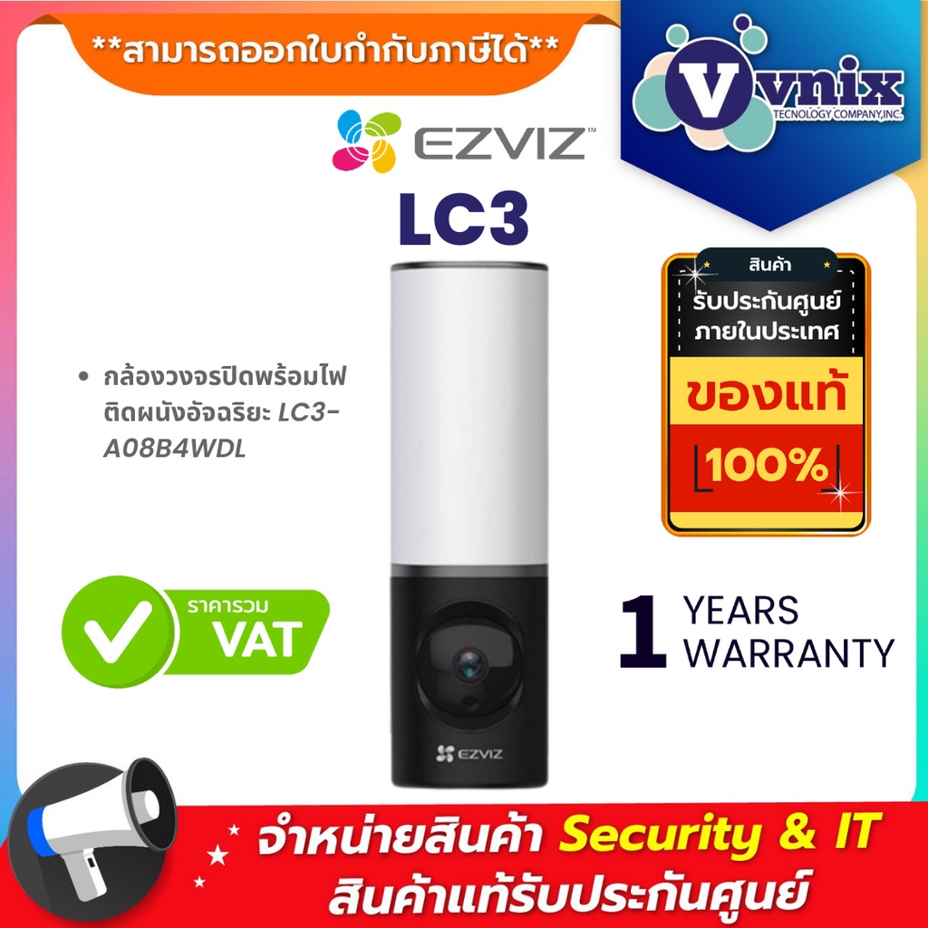 LC3 กล้องวงจรปิดพร้อมไฟติดผนังอัจฉริยะ Ezviz LC3-A08B4WDL By Vnix Group