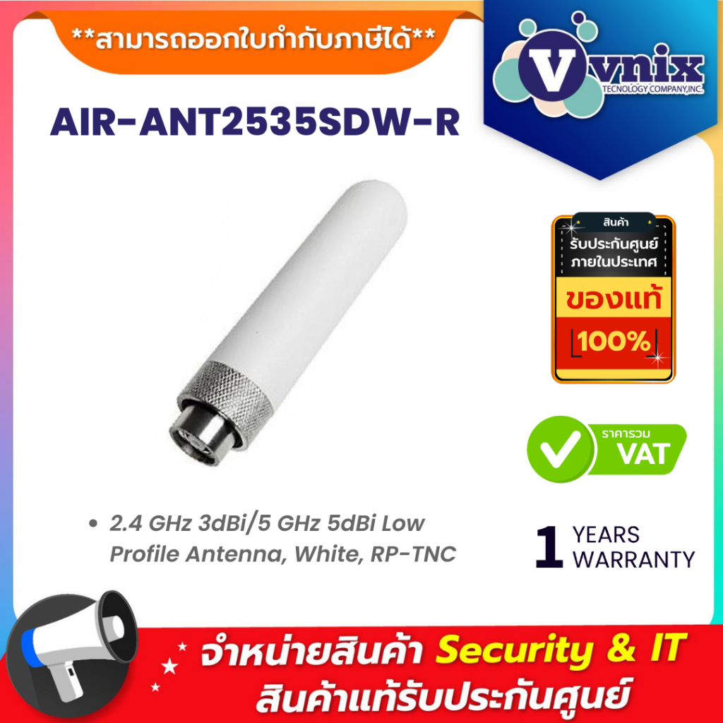 Cisco AIR-ANT2535SDW-RS Cisco Antenna 2.4 GHz 3dBi/5 GHz 5dBi Low Profile Antenna, White, RP-TNC By Vnix Group