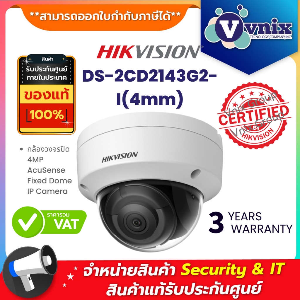 DS-2CD2143G2-I(4mm) กล้องวงจรปิด Hikvision 4MP AcuSense Fixed Dome IP Camera by Vnix Group