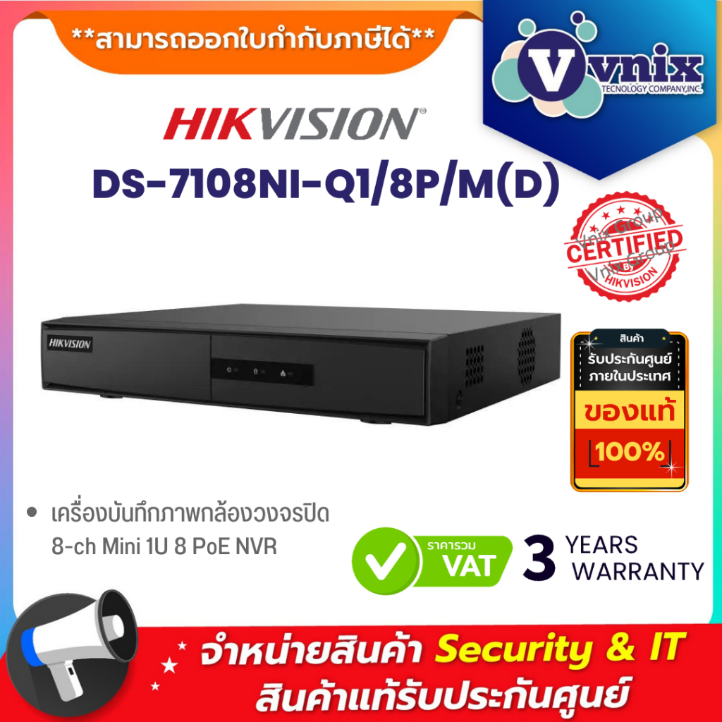 Hikvision DS-7108NI-Q1/8P/M(D) เครื่องบันทึกภาพกล้องวงจรปิด 8-ch Mini 1U 8 PoE NVR By Vnix Group