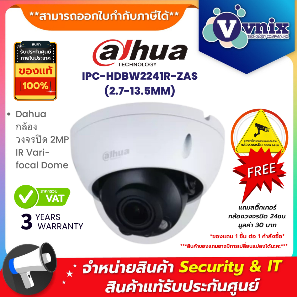 IPC-HDBW2241R-ZAS (2.7-13.5MM) Dahua กล้องวงจรปิด 2MP IR Vari-focal Dome By Vnix Group