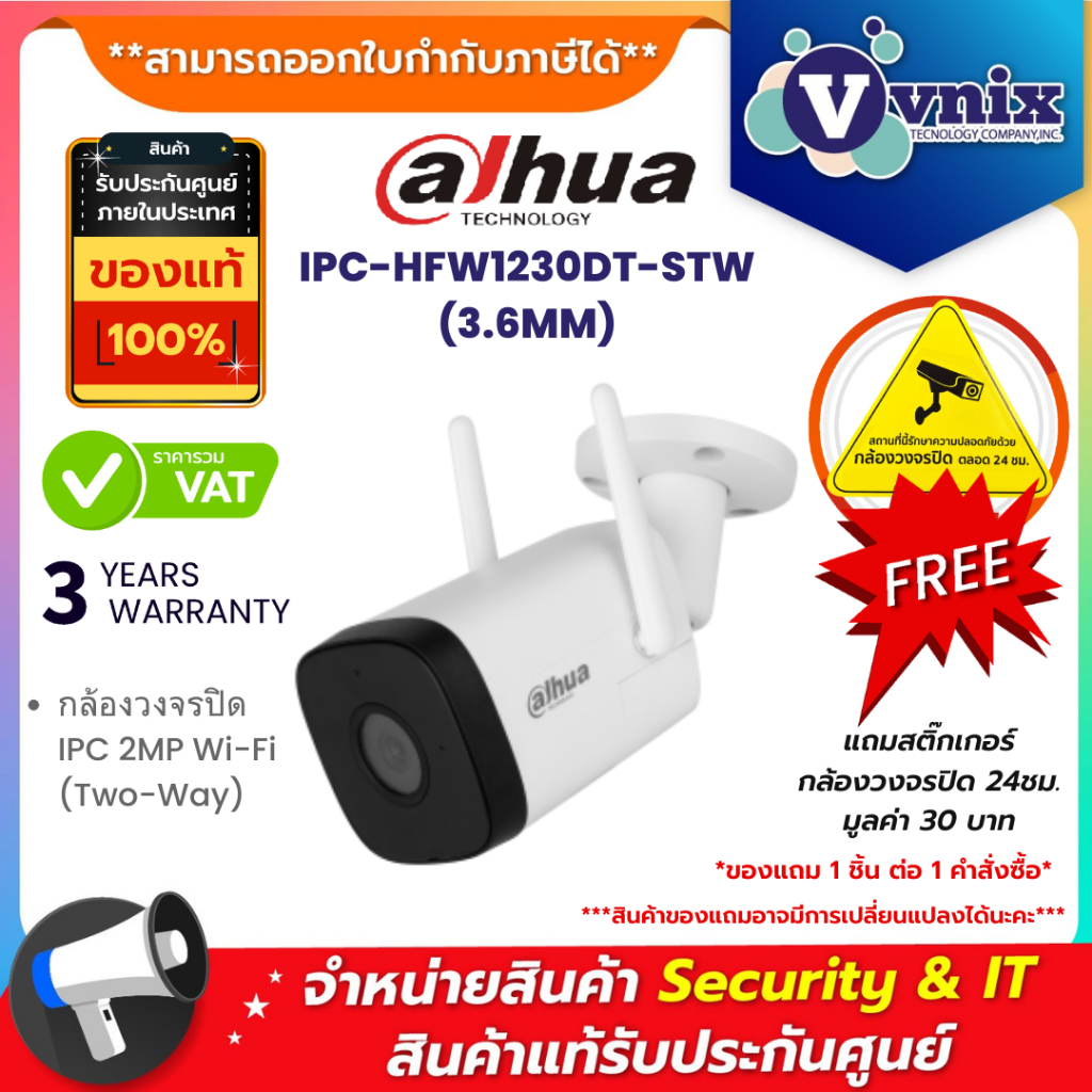 IPC-HFW1230DT-STW(3.6MM) กล้องวงจรปิด Dahua IPC 2MP Wi-Fi (Two-Way) By Vnix Group