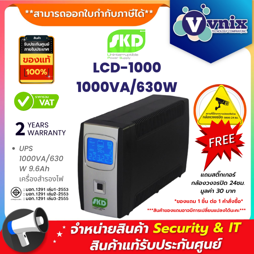 LCD-1000 SKD UPS 1000VA/630W 9.6Ah เครื่องสำรองไฟ By Vnix Group
