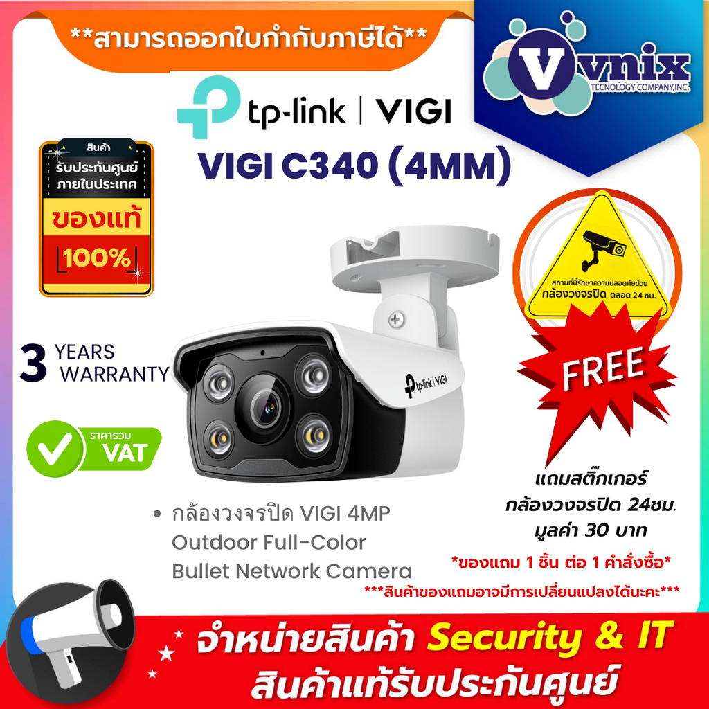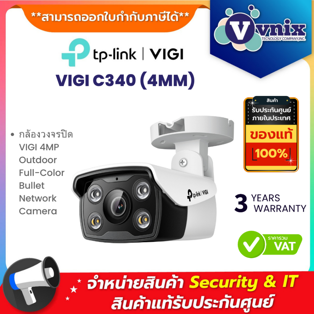TP-LINK VIGI C340(4MM) 4MP OUTDOOR FULLCOLOR NETWORK CAMERA กล้องวงจรปิด รับประกัน 3 ปี By Vnix Group