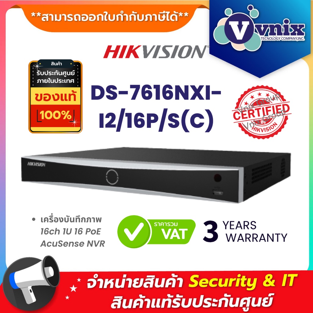 DS-7616NXI-I2/16P/S(C) เครื่องบันทึกภาพ กล้องวงจรปิด Hikvision 16ch 1U 16 PoE AcuSense NVR by Vnix Group