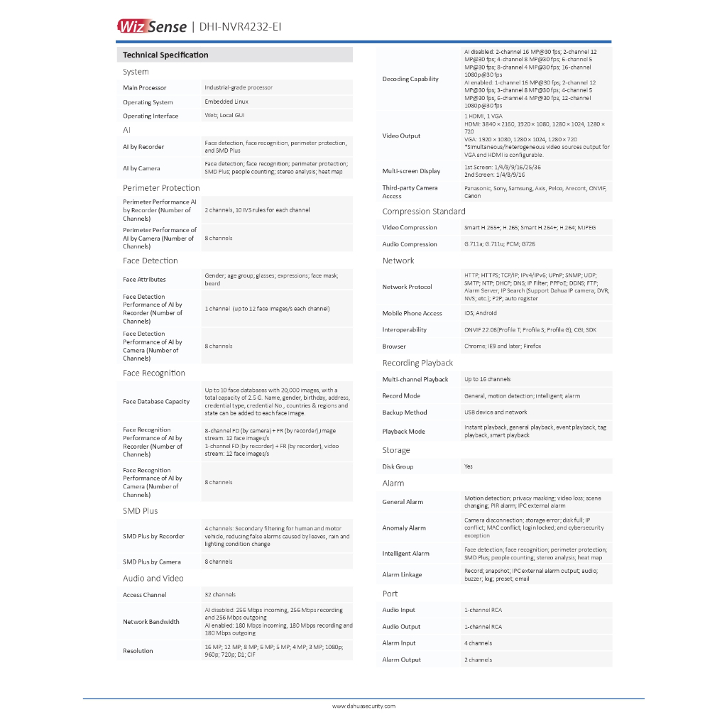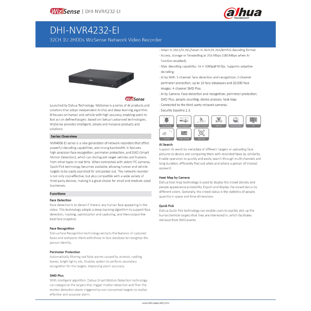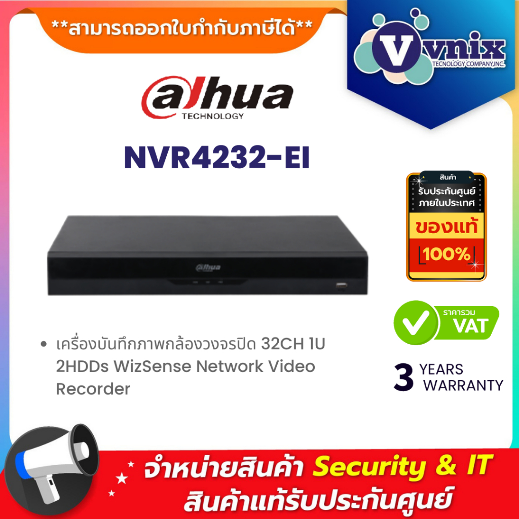 Dahua NVR4232-EI เครื่องบันทึกภาพกล้องวงจรปิด 32CH 1U 2HDDs WizSense Network Video Recorder By Vnix Group