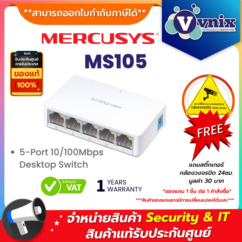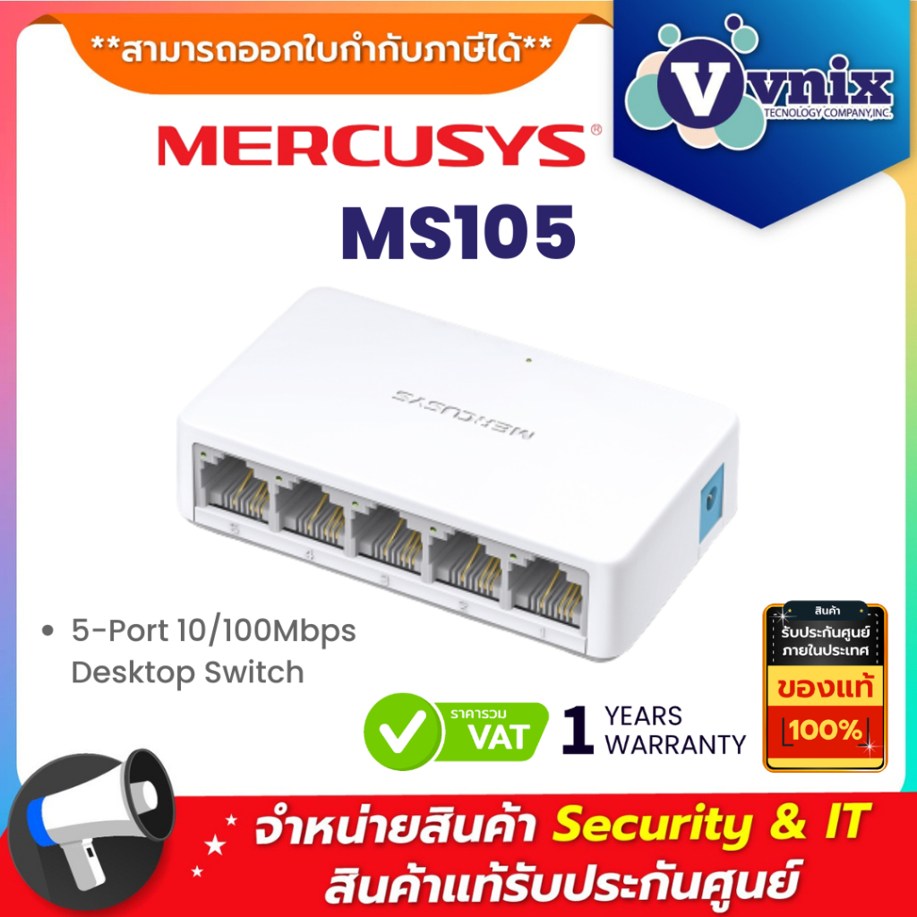 MERCUSYS MS105 5-Port 10/100Mbps Desktop Switch ประกัน 1 ปี By Vnix Group