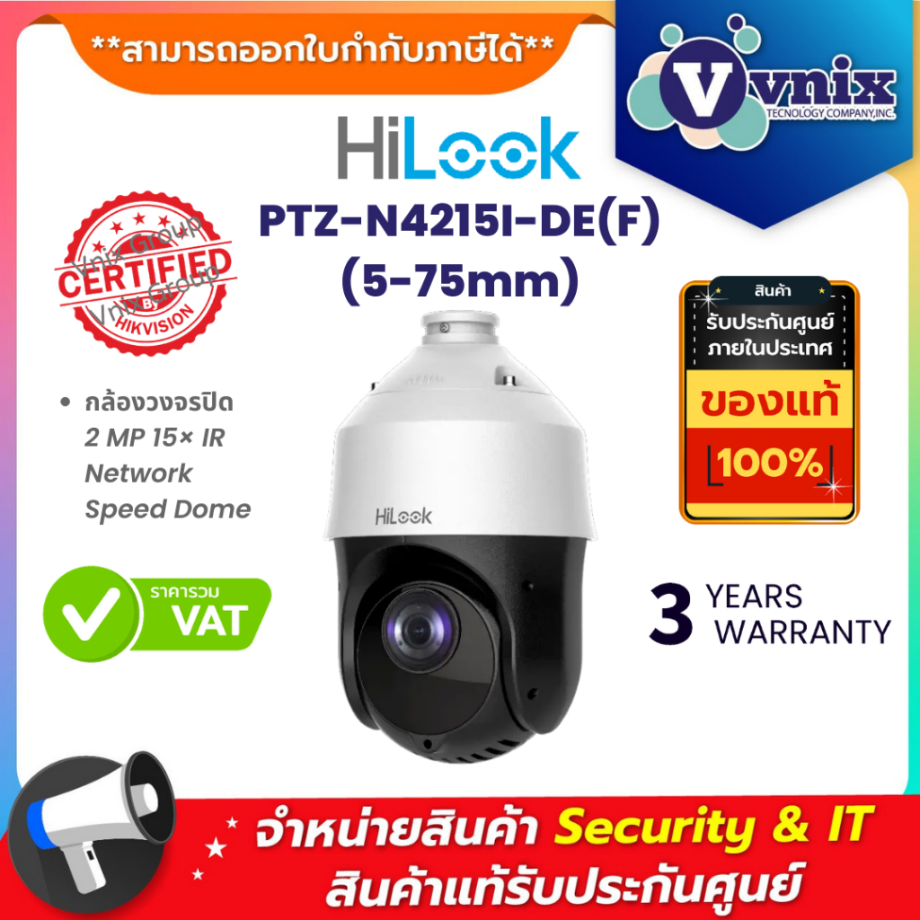 PTZ-N4215I-DE(F) (5-75mm) Hilook กล้องวงจรปิด 2 MP 15× IR Network Speed Dome By Vnix Group