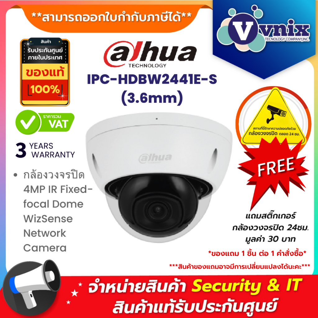 IPC-HDBW2441E-S(3.6mm) กล้องวงจรปิด Dahua WizSense IPC 4MP PoE (ไมค์) By Vnix Group