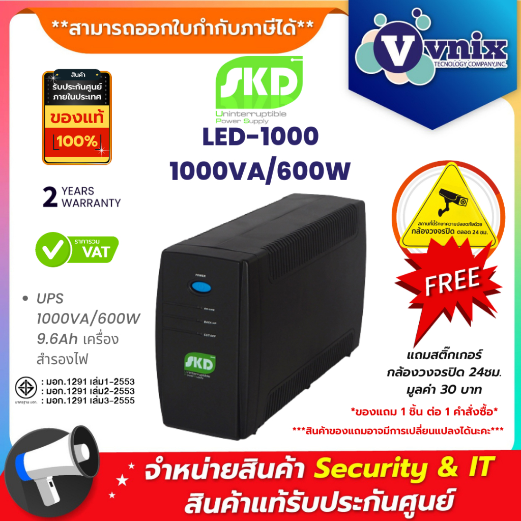 LED-1000 SKD UPS 1000VA/600W 9.6Ah เครื่องสำรองไฟ รับประกัน 2 ปี By Vnix Group