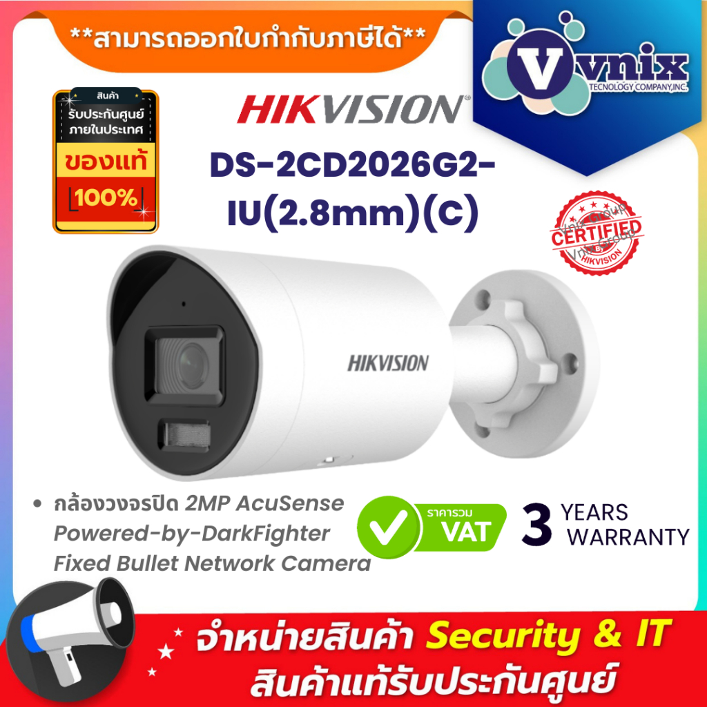 DS-2CD2026G2-IU(2.8mm)(C) Hikvision กล้องวงจรปิด 2MP AcuSense Powered-by-DarkFighter Fixed Bullet Network Camera