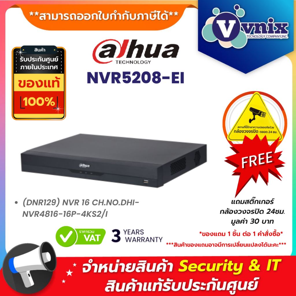 Dahua NVR5208-EI เครื่องบันทึก WizSense 8ช่อง 2SATA By Vnix Group