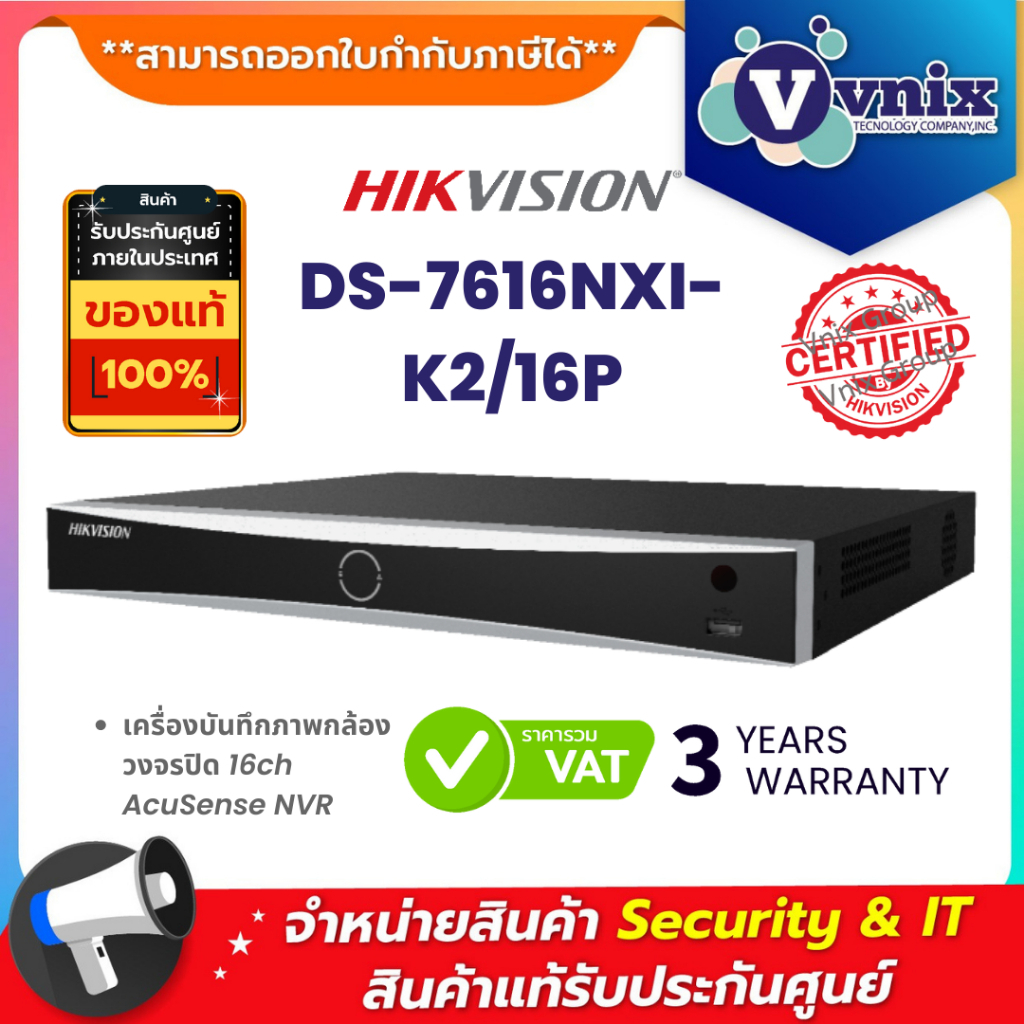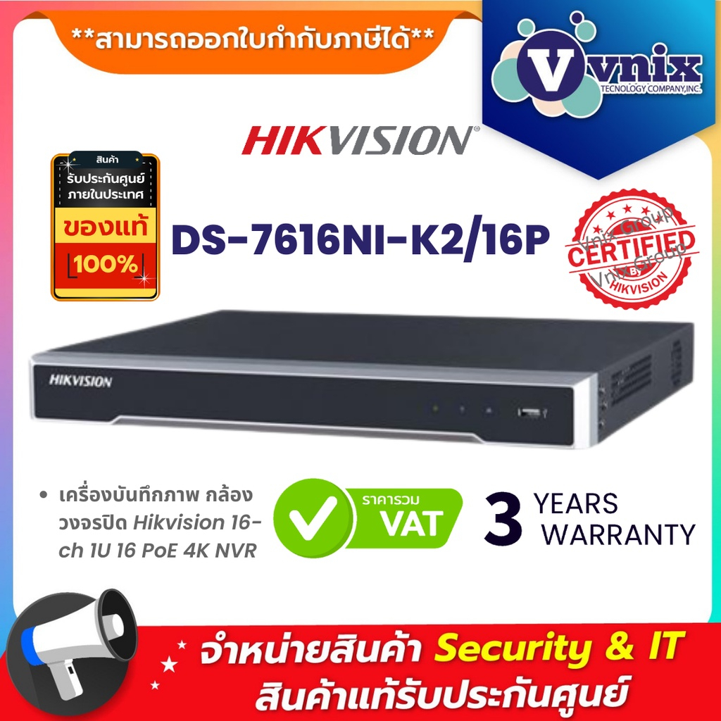 DS-7616NXI-K2/16P / DS-7616NI-K2/16P เครื่องบันทึกภาพ กล้องวงจรปิด Hikvision by Vnix Group