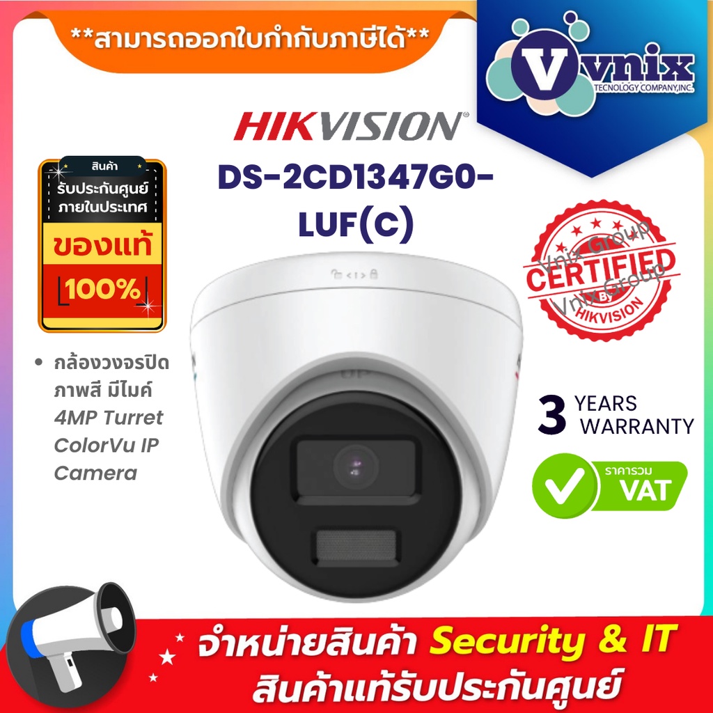 DS-2CD1347G0-LUF(4mm)(C) กล้องวงจรปิด ภาพสี มีไมค์ Hikvision 4MP Turret ColorVu IP Camera By Vnix Group
