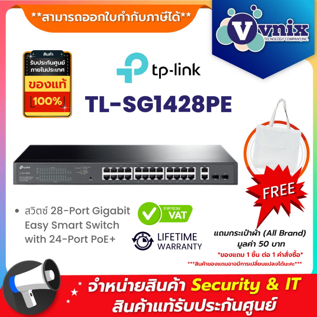 TL-SG1428PE Tplink สวิตซ์ 28-Port Gigabit Easy Smart Switch with 24-Port PoE+ By Vnix Group