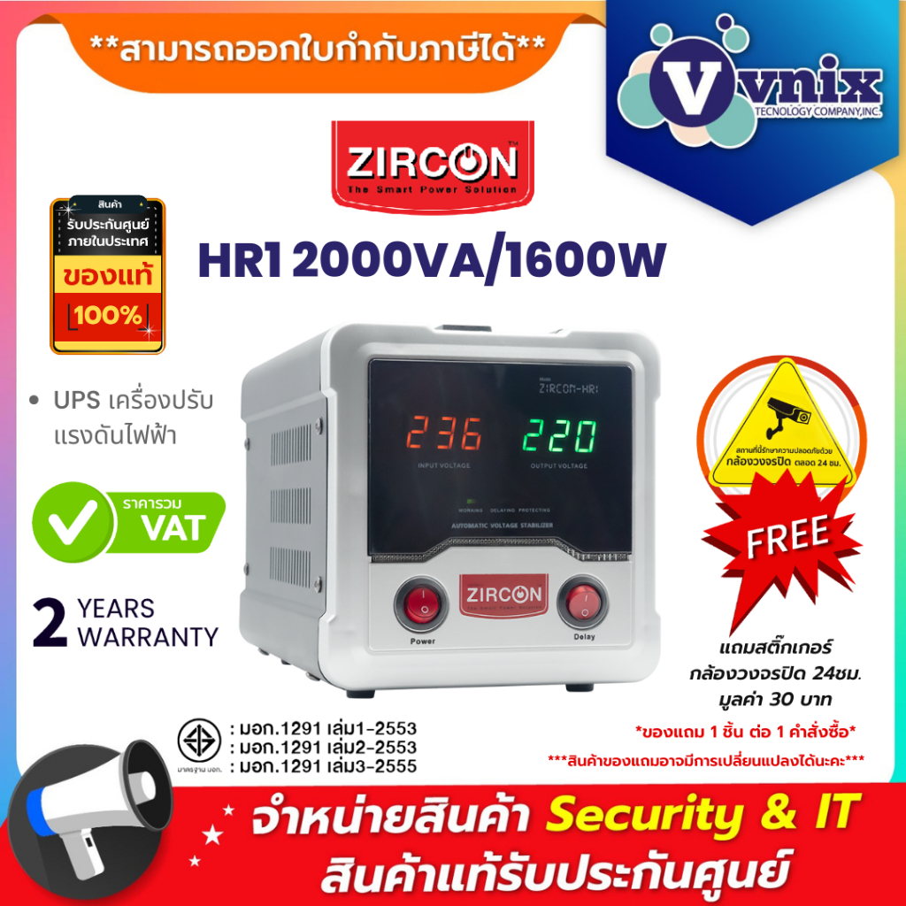 ZIRCON STABILIZER HR1 2000VA/1600W UPS เครื่องปรับแรงดันไฟฟ้า By Vnix Group