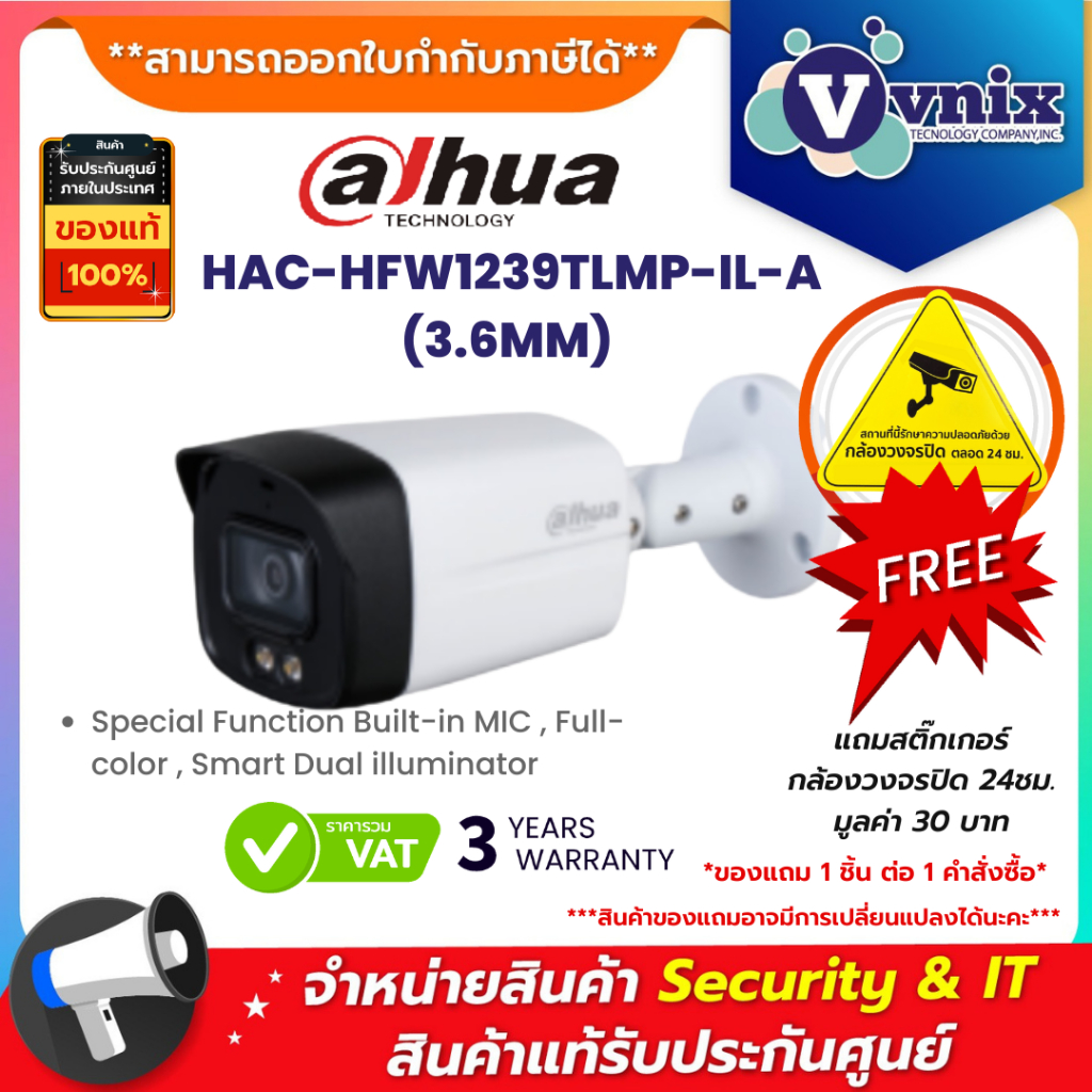 Dahua HAC-HFW1239TLMP-IL-A(3.6MM)(S2) 2M Full-color Starlight HDCVI Bullet Camera By Vnix Group