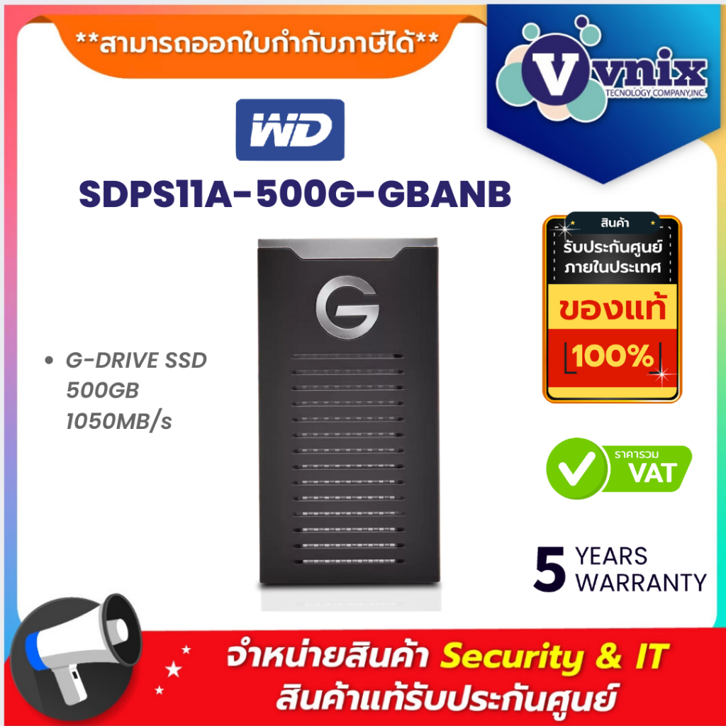 WD SDPS11A-500G-GBANB G-DRIVE SSD 500GB 1050MB/s By Vnix Group
