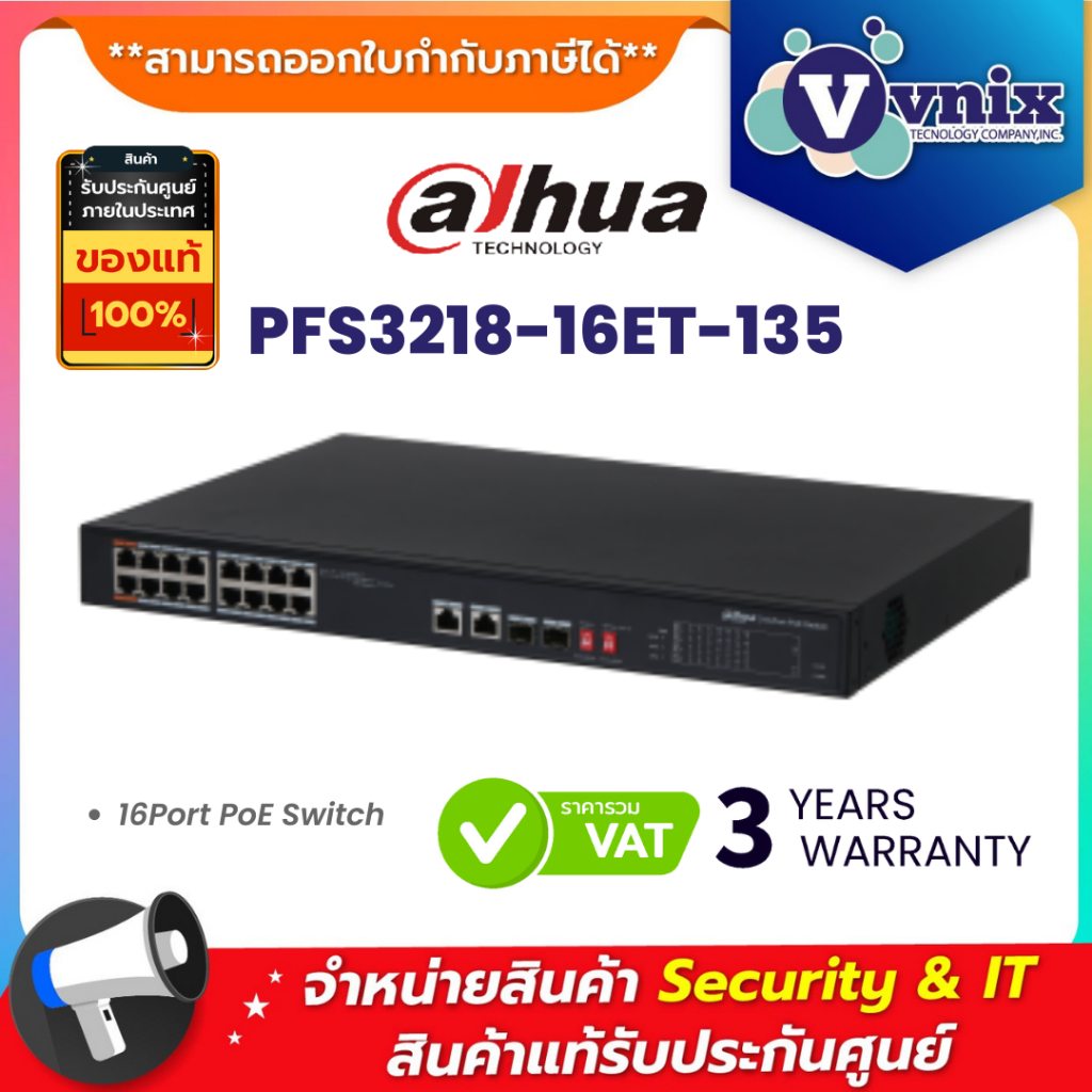 PFS3218-16ET-135 สวิตซ์ Dahua (PoE-Watchdog) 16Port PoE Switch By Vnix Group