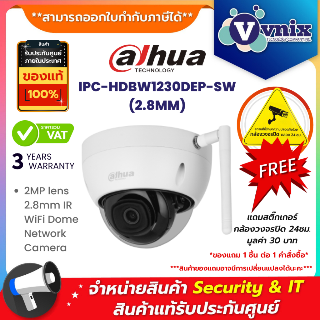 DAHUA DH-IPC-HDBW1230DEP-SW (2.8 mm.) กล้องวงจรปิดระบบ IP WIFI 2 MP By Vnix Group