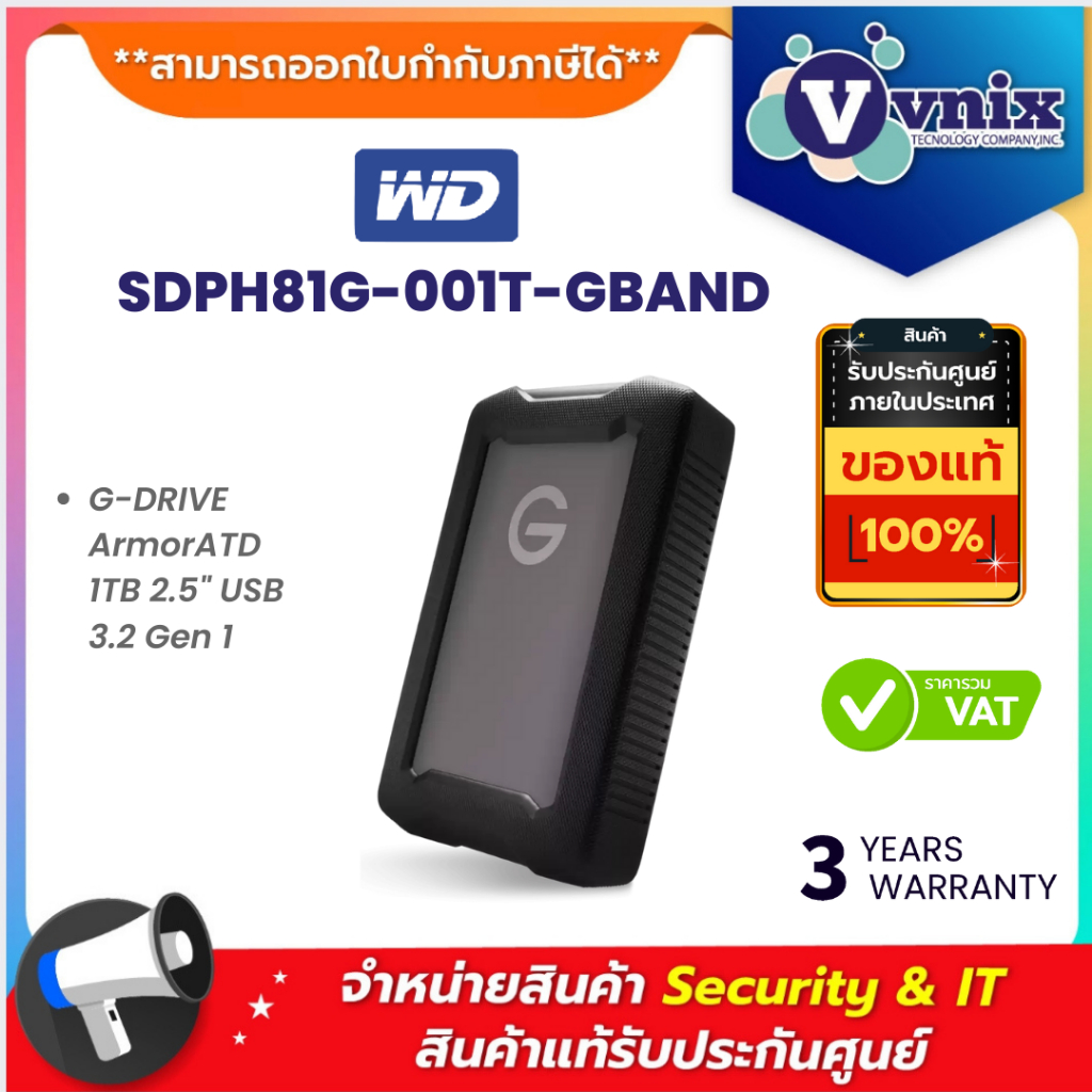 WD SDPH81G-001T-GBAND G-DRIVE ArmorATD 1TB 2.5" USB 3.2 Gen 1 By Vnix Group